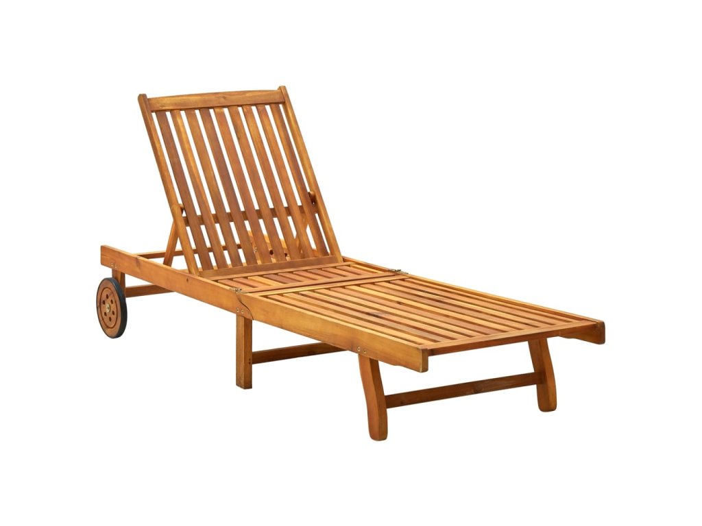 Toto vonkajšie ležadlo je vyrobené z masívneho akáciového dreva, vďaka čomu je robustné a stabilné. Operadlo a opierka nôh sú nastaviteľné a lehátko tak môžete zaistiť v požadovanej polohe. Toto záhradné ležadlo sa dá ľahko premiestňovať po dome pomocou 2 koliesok. Lehátko má pohodlný výsuvný stolík na umiestnenie telefónu, slnečných okuliarov, nápojov a iných drobností. Vankúš vám dodá ďalšie pohodlie počas oddychu. Každý vankúš je vybavený dvoma sadami šnúrok, aby ste ho mohli pevne pripevniť k lehátku.