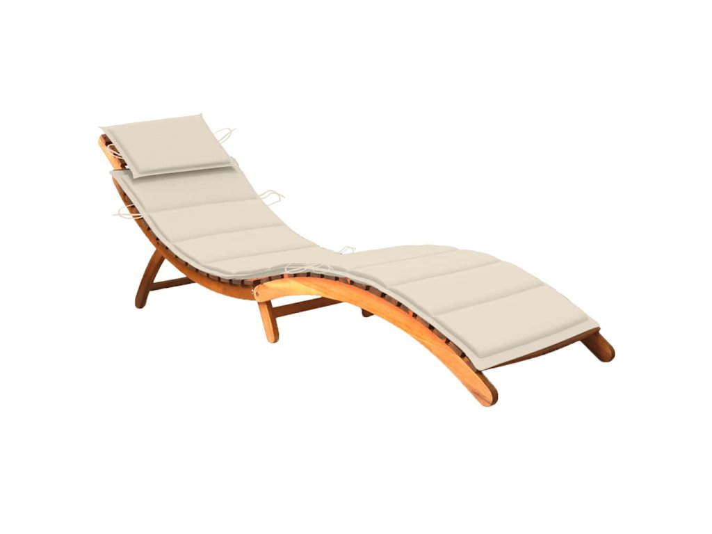 Toto vonkajšie ležadlo je vyrobené z masívneho akáciového dreva, vďaka čomu je pevné a stabilné. Lehátko má ergonomicky zakrivený tvar, ktorý vám umožní ľahnúť si a úplne relaxovať. Toto lehátko je možné zložiť, ak ho nepoužívate. Vankúš s podhlavníkom vám dodá väčšie pohodlie pri leňošení. Každý vankúš je vybavený šiestimi sadami šnúrok, aby ste ho mohli pevne pripevniť na lehátku.