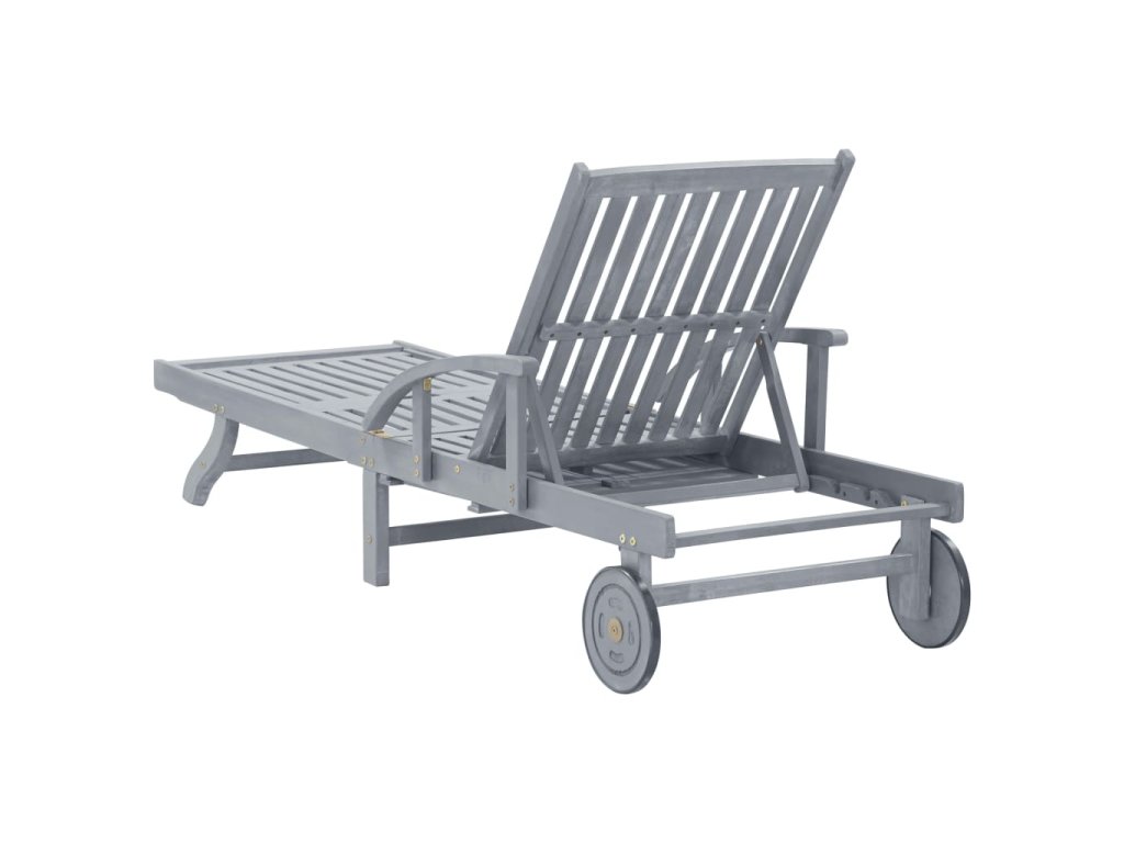 Toto vonkajšie ležadlo je vyrobené z masívneho akáciového dreva so sivým premývaným náterom, vďaka čomu je robustné a stabilné. Operadlo a opierka nôh sú nastaviteľné a lehátko môžete zaistiť v požadovanej polohe. Toto záhradné ležadlo sa dá ľahko premiestňovať po dome pomocou 2 koliesok. Lehátko má pohodlný výsuvný stolík na umiestnenie telefónu, slnečných okuliarov, nápojov a iných drobností. Vankúš vám dodá ďalšie pohodlie počas oddychu. Každý vankúš je vybavený dvoma sadami šnúrok, aby ste ho mohli pevne pripevniť k lehátku.