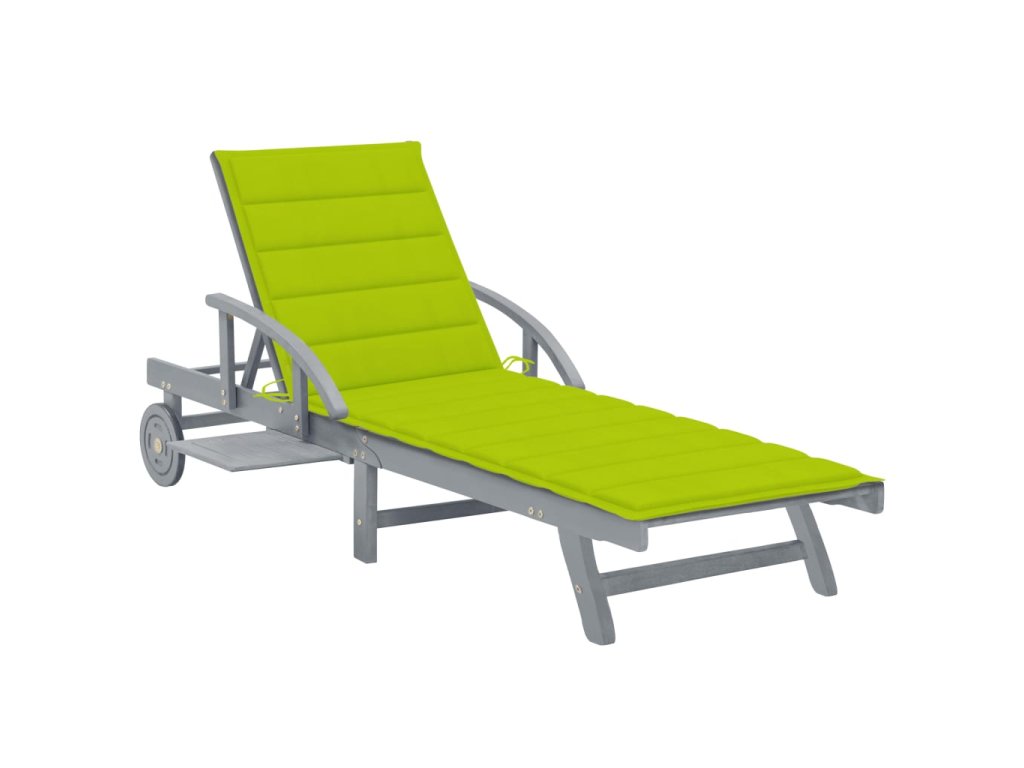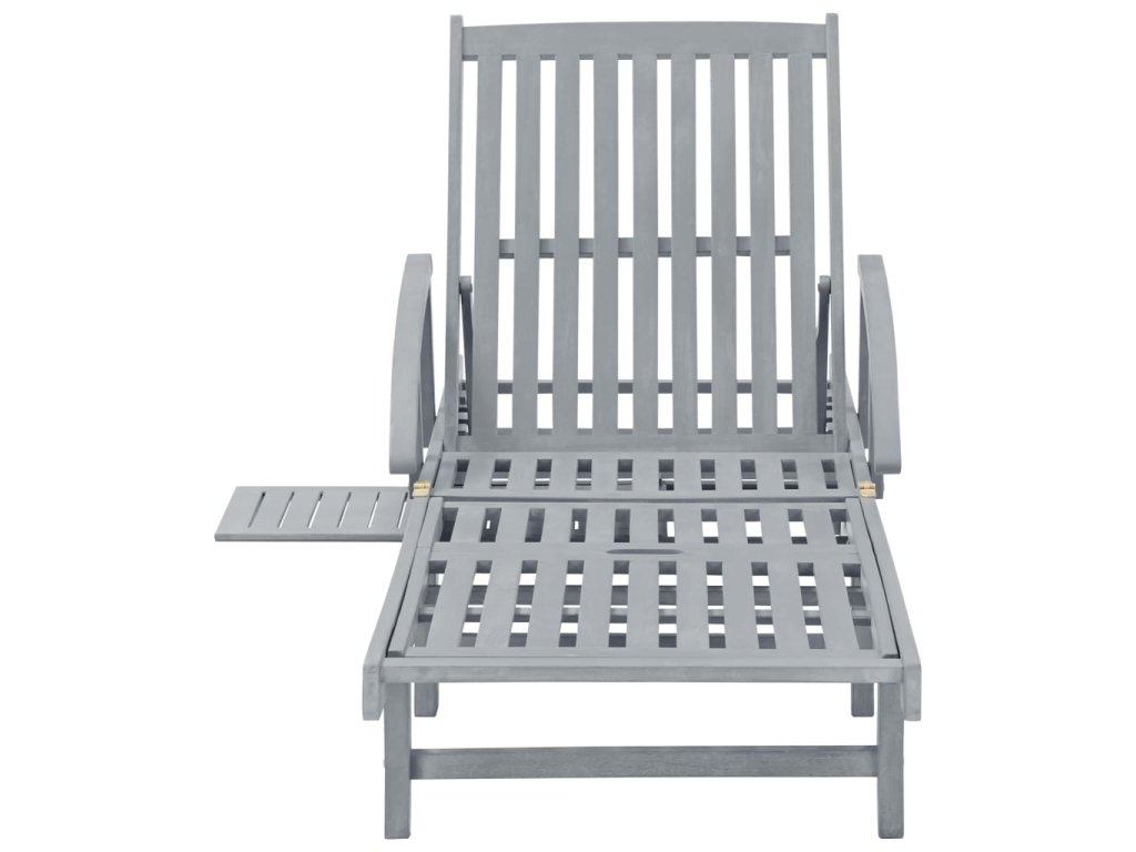 Toto vonkajšie ležadlo je vyrobené z masívneho akáciového dreva so sivým premývaným náterom, vďaka čomu je robustné a stabilné. Operadlo a opierka nôh sú nastaviteľné a lehátko môžete zaistiť v požadovanej polohe. Toto záhradné ležadlo sa dá ľahko premiestňovať po dome pomocou 2 koliesok. Lehátko má pohodlný výsuvný stolík na umiestnenie telefónu, slnečných okuliarov, nápojov a iných drobností. Vankúš vám dodá ďalšie pohodlie počas oddychu. Každý vankúš je vybavený dvoma sadami šnúrok, aby ste ho mohli pevne pripevniť k lehátku.