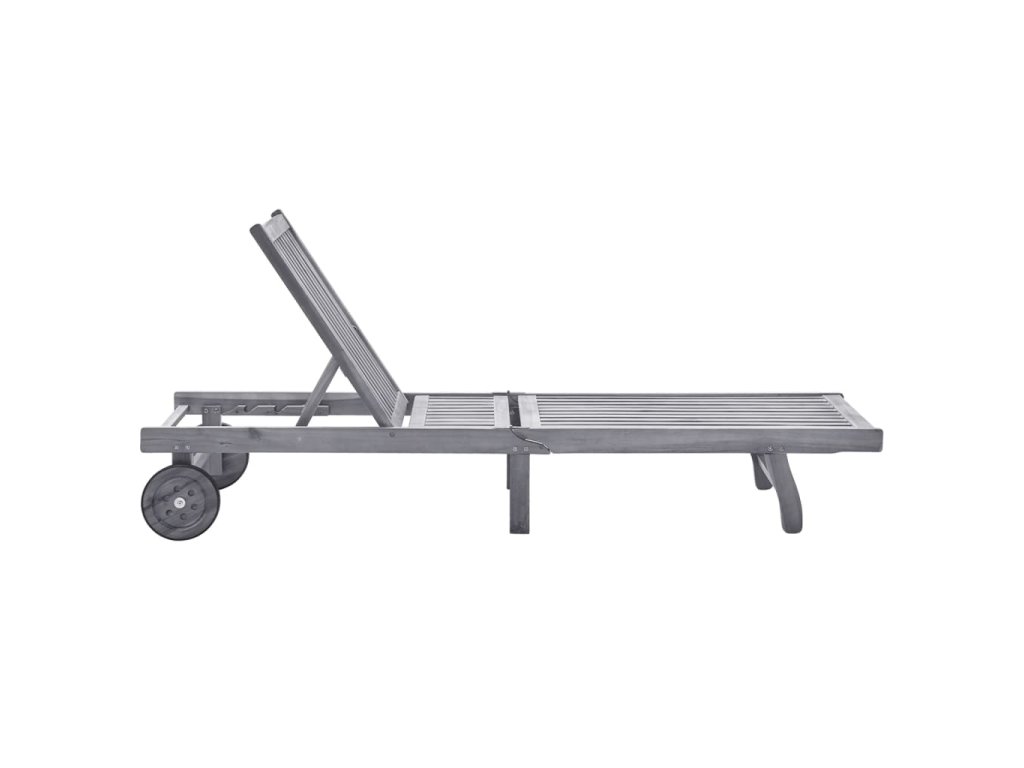 Toto vonkajšie ležadlo je vyrobené z masívneho akáciového dreva so sivým zakončením, vďaka čomu je robustné a stabilné. Operadlo a opierka nôh sú nastaviteľné a lehátko tak môžete zaistiť v požadovanej polohe. Toto záhradné ležadlo sa dá ľahko premiestňovať po dome pomocou 2 koliesok. Vankúš vám dodá dodatočné pohodlie počas oddychu.