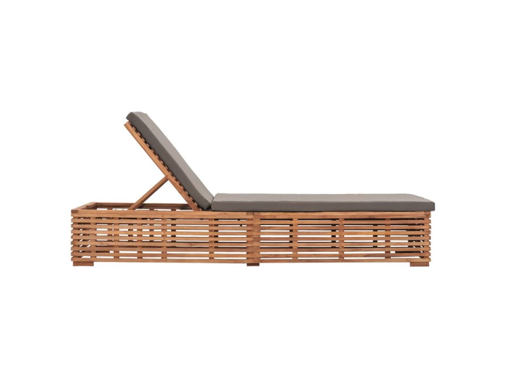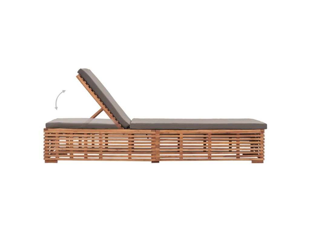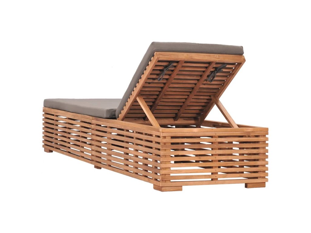 Tento nábytok je vyrobený z mimoriadne trvácneho tvrdého teakového dreva, ktoré bolo umelo vysušené v sušiarni a jeho povrch bol následne jemne obrúsený, aby získal hladký vzhľad. Teakové drevo sa vyznačuje výnimočnou pevnosťou a odolnosťou voči poveternostným vplyvom, a tak predstavuje jeden z najvhodnejších materiálov na výrobu záhradného nábytku spomedzi všetkých druhov dreva. Ak si chcete zaobstarať záhradný nábytok, ktorý vám bude slúžiť dlhé roky, teakové drevo je pre vás ako stvorené. Priložený vankúš zvyšuje pohodlie počas odpočinku. Operadlo je možné sklopiť do 4 polôh, takže si ho môžete prispôsobiť podľa seba.