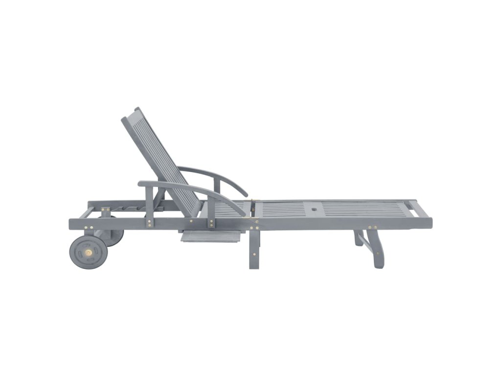 Toto vonkajšie lehátko vyrobené z odolného akáciového dreva so sivou povrchovou úpravou sa vyznačuje vynikajúcou odolnosťou voči poveternostným vplyvom. Jeho široké podrúčky, vysoké operadlo a tvarované sedadlo prispievajú k vizuálnej príťažlivosti, ale aj k pohodliu počas sedenia alebo ležania. Operadlo a opierka nôh sú nastaviteľné tak, že lehátko môžete uzamknúť do požadovanej polohy. Má 2 kolieska a ľahko sa presúva. Jednoducho sa čistí a udržiava.