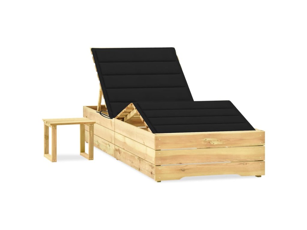 Lehátko je vyrobené z impregnovaného borovicového dreva, je odolné voči poveternostným vplyvom, veľmi trvácne a ľahko sa čistí vlhkou handričkou. Operadlo a podnožka sú nastaviteľné, aby ste si mohli nájsť tú najpohodlnejšiu polohu. Na stolík si môžete odložiť telefón, okuliare, nápoje a iné malé položky. Pribalený vankúš je nielen praktickým doplnkom; má aj dekoratívnu funkciu.