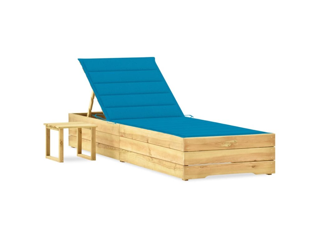 Lehátko je vyrobené z impregnovaného borovicového dreva, je odolné voči poveternostným vplyvom, veľmi trvácne a ľahko sa čistí vlhkou handričkou. Operadlo a podnožka sú nastaviteľné, aby ste si mohli nájsť tú najpohodlnejšiu polohu. Na stolík si môžete odložiť telefón, okuliare, nápoje a iné malé položky. Pribalený vankúš je nielen praktickým doplnkom; má aj dekoratívnu funkciu.