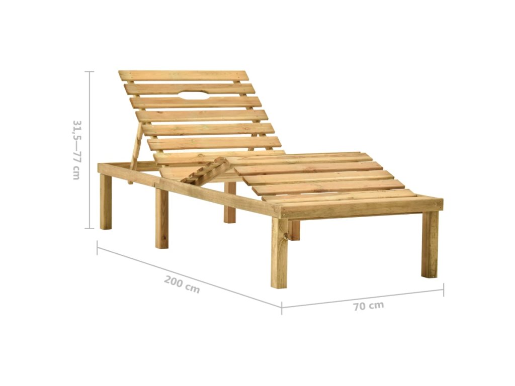 Lehátko je vyrobené z impregnovaného borovicového dreva, je odolné voči poveternostným vplyvom, veľmi trvácne a ľahko sa čistí vlhkou handričkou. Operadlo a podnožka sú nastaviteľné, aby ste si mohli nájsť tú najpohodlnejšiu polohu. Na stolík si môžete odložiť telefón, okuliare, nápoje a iné malé položky. Pribalený vankúš je nielen praktickým doplnkom; má aj dekoratívnu funkciu.