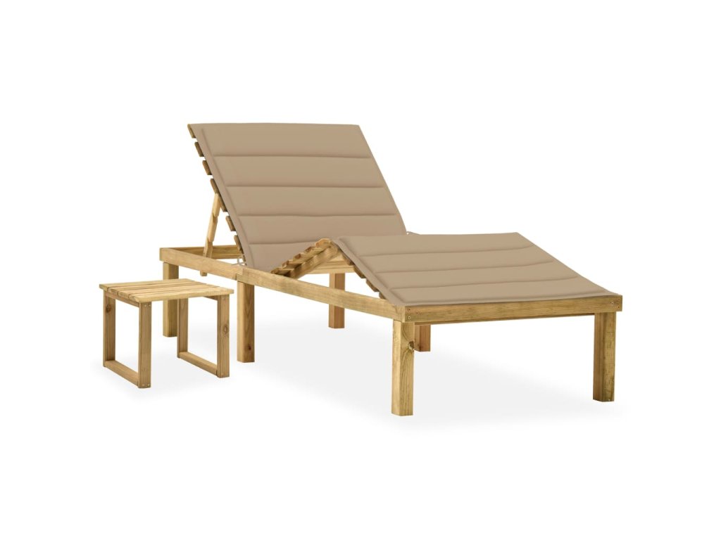 Toto drevené ležadlo s vankúšom a stolíkom kombinuje štýl a funkčnosť, a dodá vášmu vonkajšiemu obytnému priestoru nádych rustikálneho šarmu.
