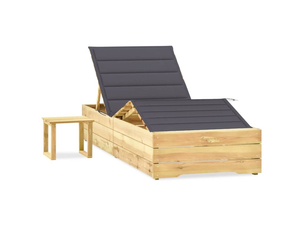Lehátko je vyrobené z impregnovaného borovicového dreva, je odolné voči poveternostným vplyvom, veľmi trvácne a ľahko sa čistí vlhkou handričkou. Operadlo a podnožka sú nastaviteľné, aby ste si mohli nájsť tú najpohodlnejšiu polohu. Na stolík si môžete odložiť telefón, okuliare, nápoje a iné malé položky. Pribalený vankúš je nielen praktickým doplnkom; má aj dekoratívnu funkciu.