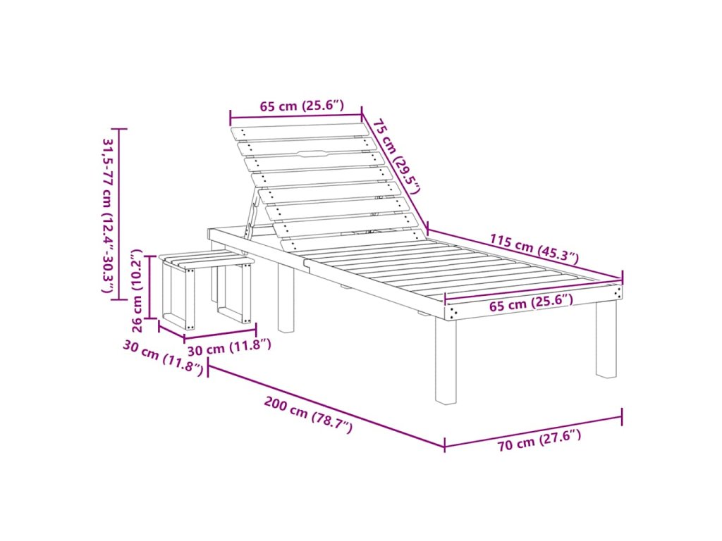 - Rozmery lehátka: 200 x 70 x (31,5-77) cm (D x Š x V)