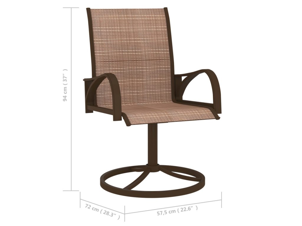 Tieto stoličky sú vyrobené z práškovaného oceľového rámu, ktorý je odolný voči hrdzi a poveternostným vplyvom. Priedušná textilná tkanina je dobre vetraná a rýchloschnúca. Okrúhla základňa otočná o 360°, ergonomická podpora chrbta a zakrivené ramená vám poskytnú lepší zážitok zo sedenia a pohodlie.