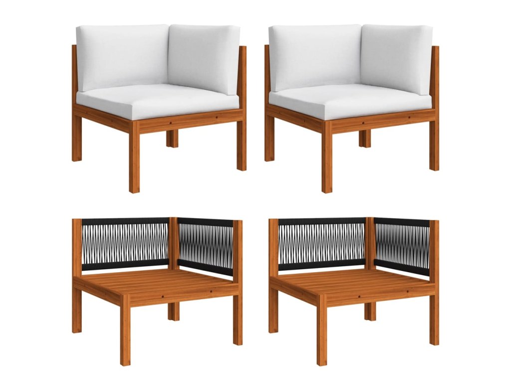 Tieto drevené rohové záhradné pohovky s operadlom z pleteného lana budú skvelým doplnkom vašej záhrady, terasy alebo verandy, kde si môžete pokecať s rodinou a priateľmi alebo si len tak užívať počasie.