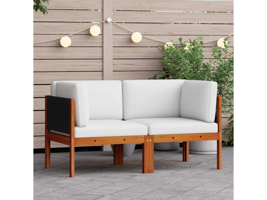 Vyrobené z masívneho akáciového dreva s olejovou povrchovou úpravou, sú tieto pohovky odolné a stabilné. Vďaka prepracovanému lanovému operadlu dodáva vonkajšie sedenie sofistikovaný nádych každému vonkajšiemu priestoru. Hrubo polstrované a odnímateľné vankúše sedadla a operadla prispievajú k maximálnemu pohodliu. Vďaka modulárnemu dizajnu sú flexibilné a ľahko sa premiestňujú do akéhokoľvek prostredia. Môžete ich kombinovať s inými modulárnymi segmentmi a vytvoriť si vlastné záhradné posedenie podľa svojho vkusu!