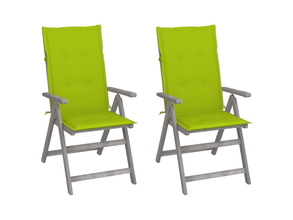 Stoličky sú vyrobené z masívneho akáciového dreva so sivou povrchovou úpravou. Je to tvrdé drevo s bohatou štruktúrou. Tieto nádherne navrhnuté záhradné stoličky sú stabilné, odolné a pútavé. Operadlo sa dá nastaviť do 5 pozícií, takže si môžete kedykoľvek nastaviť tú najpohodlnejšiu polohu podľa svojich preferencií. Navyše, pribalené vankúše poskytujú extra pohodlie pri odpočinku. Sú vyrobené zo 100% polyesteru, ktorý je upravený tak, aby bol vodeodolný. Každý vankúš má elastický pás a dve sady šnúrok, pomocou ktorých ho pevne pripevníte k stoličke.