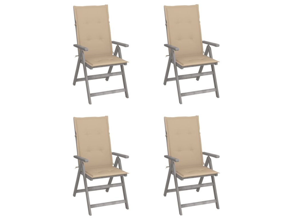 Stoličky sú vyrobené z masívneho akáciového dreva so sivou povrchovou úpravou. Je to tvrdé drevo s bohatou štruktúrou. Tieto nádherne navrhnuté záhradné stoličky sú stabilné, odolné a pútavé. Operadlo sa dá nastaviť do 5 pozícií, takže si môžete kedykoľvek nastaviť tú najpohodlnejšiu polohu podľa svojich preferencií. Navyše, pribalené vankúše poskytujú ďalšie pohodlie pri leňošení alebo stolovaní. Každý vankúš má gumičku a dve sady šnúrok, pomocou ktorých ho pevne pripevníte k stoličke. Tieto stoličky sú ideálne na stolovanie s rodinou alebo len tak na vychutnanie si pekného počasia na záhrade.