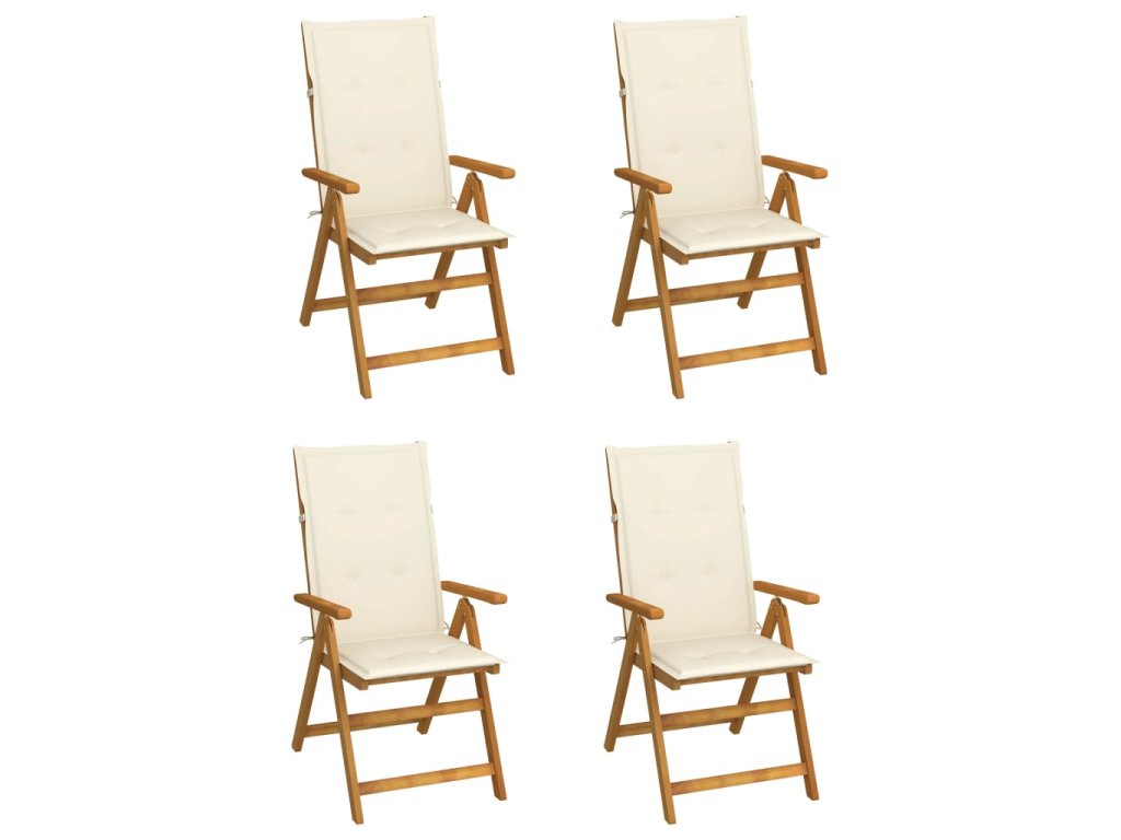 Tieto vonkajšie stoličky sú vyrobené z masívneho akáciového dreva s olejovým náterom, čo je tvrdé drevo s hustou kresbou. Masívne akáciové drevo je dostatočne pevné a odoláva opotrebovaniu vplyvom času. Vďaka olejovej povrchovej úprave sa tieto stoličky ľahko čistia vlhkou handričkou. Operadlá týchto kresiel sú navyše nastaviteľné do 5 polôh ležania, čo vám umožní vždy si nájsť tú najpríjemnejšiu polohu. Pribalený vankúš navyše poskytuje extra pohodlie pri leňošení alebo stolovaní. Každý vankúš má gumičku a dve sady šnúrok, ktoré ho pevne pripevnia na stoličku.
