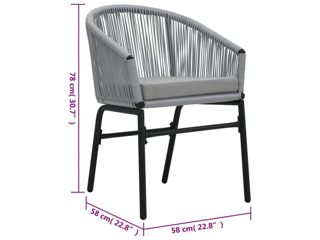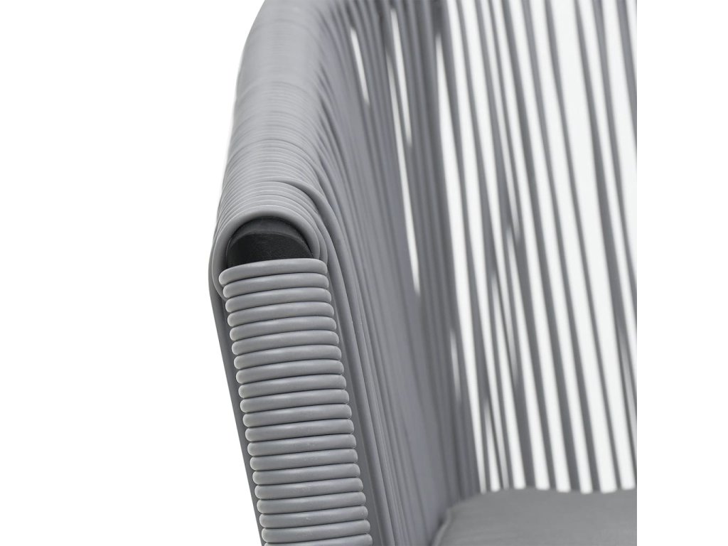 Sada stoličiek je vyrobená z PE ratanu, ktorý je vypletaný na oceľovom ráme s jemnou práškovou povrchovou úpravou, a tak je stabilná a odolná voči nepriaznivému počasiu a UV žiareniu. Pohodlné podložky sú pokryté vodovzdornou polyesterovou látkou, ktorá je vhodná do exteriéru.