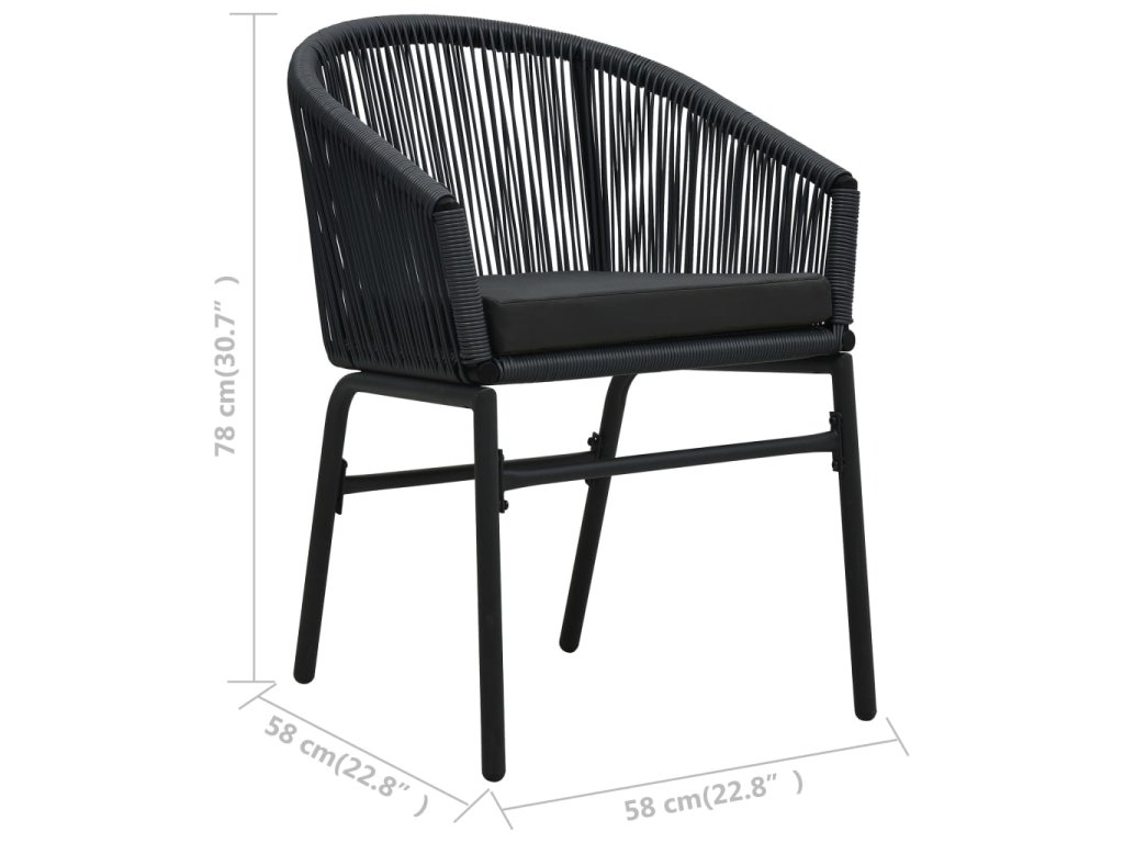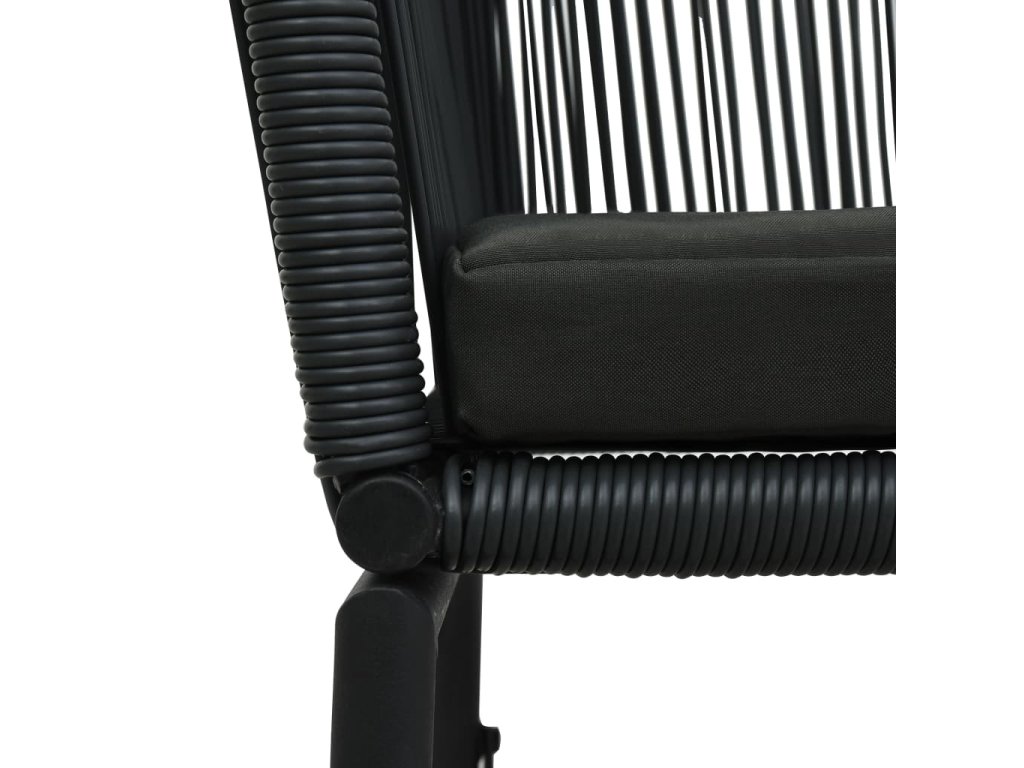 Sada stoličiek je vyrobená z PE ratanu, ktorý je vypletaný na oceľovom ráme s jemnou práškovou povrchovou úpravou, a tak je stabilná a odolná voči nepriaznivému počasiu a UV žiareniu. Pohodlné podložky sú pokryté vodovzdornou polyesterovou látkou, ktorá je vhodná do exteriéru.