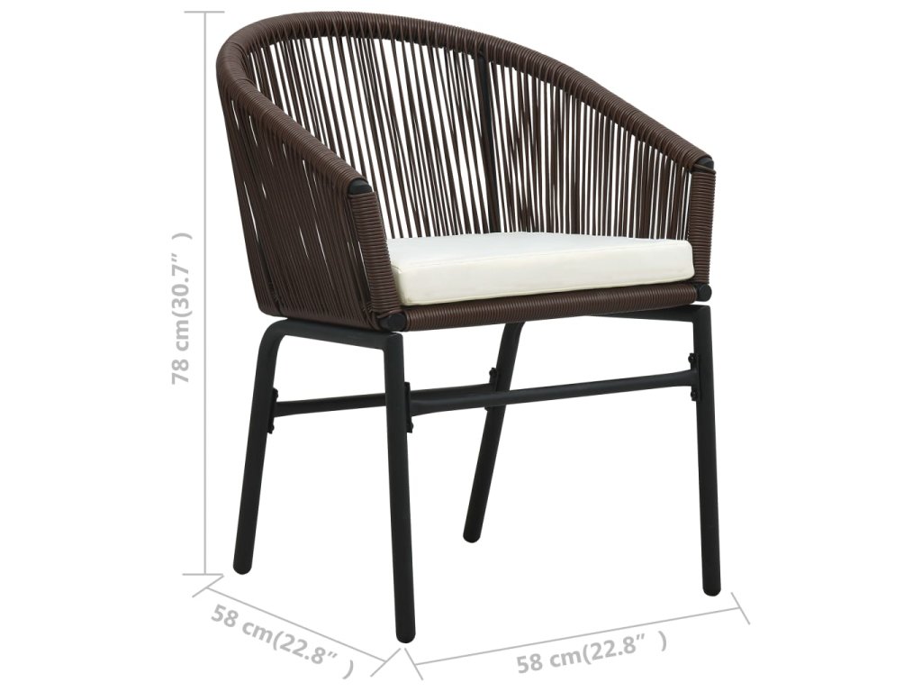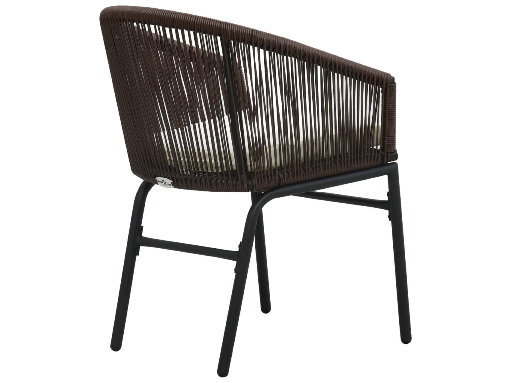 Sada stoličiek je vyrobená z PE ratanu, ktorý je vypletaný na oceľovom ráme s jemnou práškovou povrchovou úpravou, a tak je stabilná a odolná voči nepriaznivému počasiu a UV žiareniu. Pohodlné podložky sú pokryté vodovzdornou polyesterovou látkou, ktorá je vhodná do exteriéru.