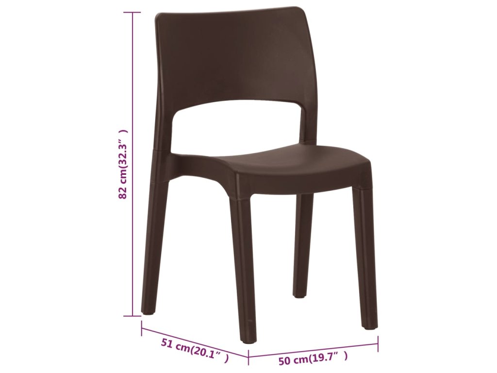 - Prémiový materiál: Tieto terasové stoličky sú vyrobené z polypropylénu, ktorý nepraská, neštiepi sa ani sa neodlupuje a je dokonca odolný voči vyblednutiu, vďaka čomu sa ľahko čistí a je odolný na vonkajšie použitie.