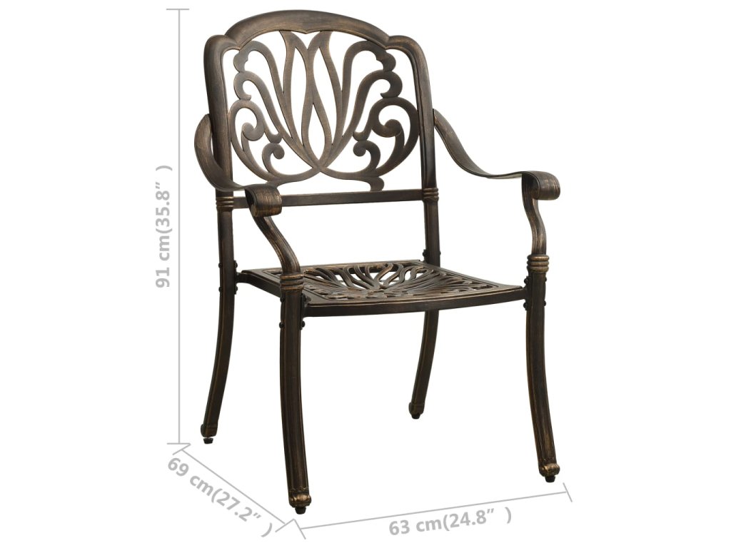 Tieto jedálenské stoličky vyrobené z liateho hliníka sú robustné a odolné. Vďaka materiálu odolnému voči korózii a poveternostným vplyvom sú stoličky ideálne pre vonkajšie použitie. Krásna vzory na sedadle a operadle robia z kresla elegantný doplnok do vášho vonkajšieho priestoru. Tieto stoličky môžete použiť samostatne alebo ako doplnok k inému vonkajšiemu nábytku. Odolajú všetkým poveternostným podmienkam.