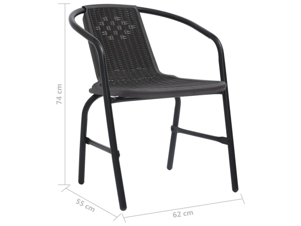 Vďaka oceľovému rámu sú vonkajšie stoličky stabilné a robustné. Sedadlá z plastu s dizajnom ratanu zvyšujú komfort počas sedenia. Stoličky sú navyše stohovateľné, aby ste ušetrili priestor, keď sa nepoužívajú.