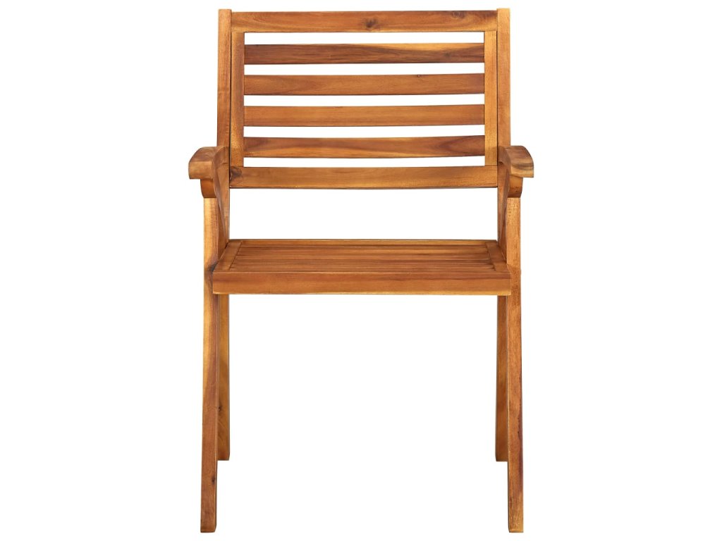 Vonkajšia stolička je vyrobená z masívneho akáciového dreva, tvrdého dreva s bohatou štruktúrou. Tieto nádherne navrhnuté stoličky sú stabilné, odolné a pútavé. Povrch s olejovým náterom umožňuje ľahké čistenie vlhkou handričkou. Podrúčky zvyšujú pohodlie pri sedení. Tieto kreslá s lamelovým dizajnom sú praktickým aj dekoratívnym doplnkom.