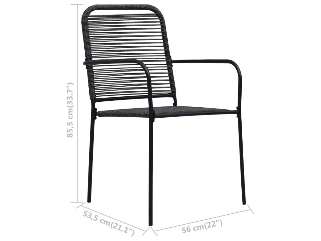 Táto stolička je vyrobená z bavlnených šnúrok opletených na oceľovom ráme s práškovanou povrchovou úpravou. Je odolná voči nepriaznivému počasiu a UV lúčom.