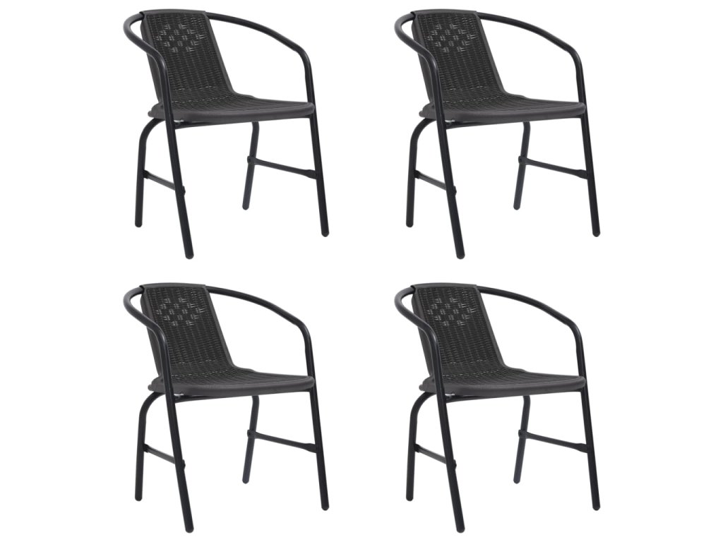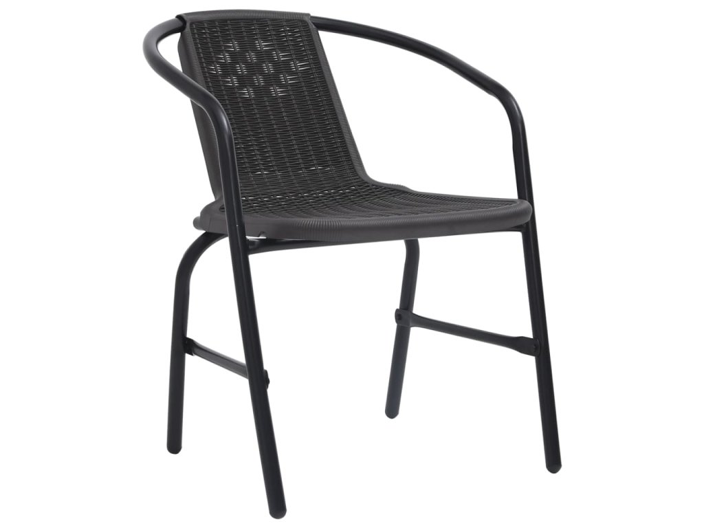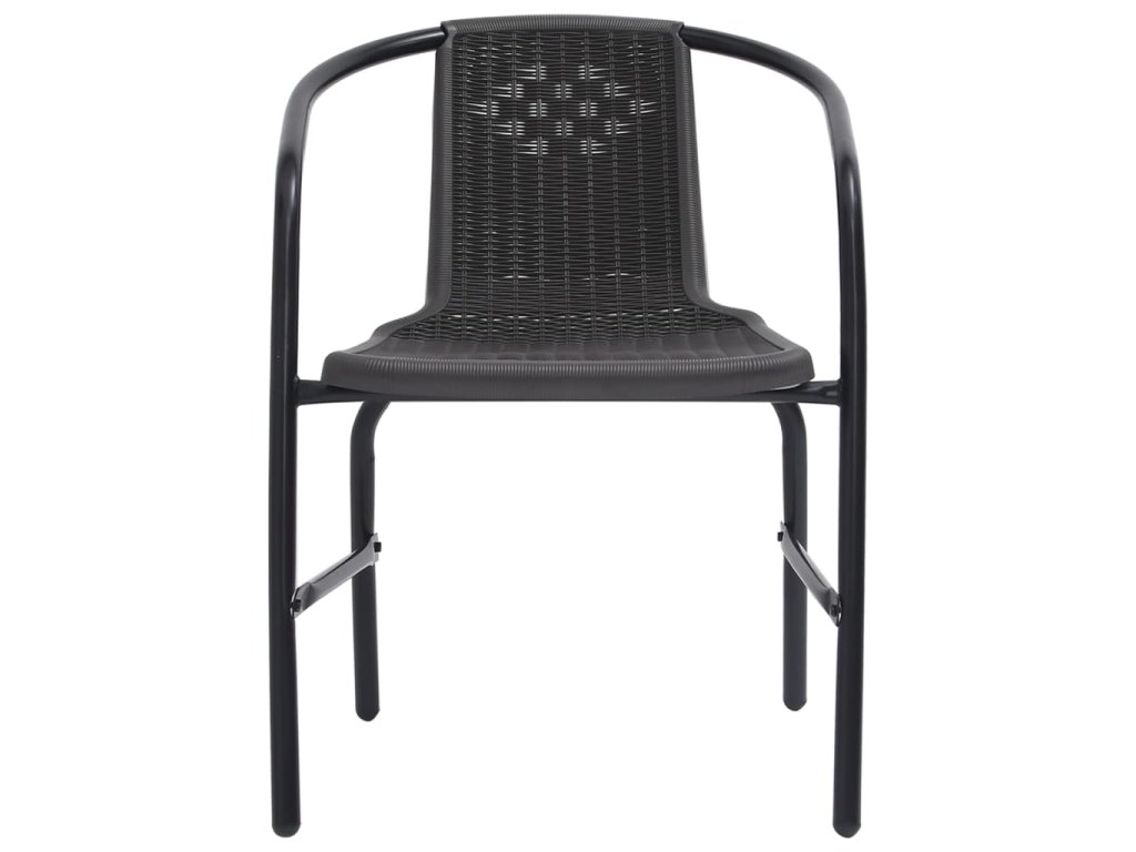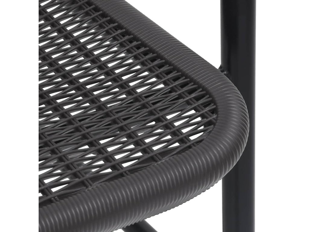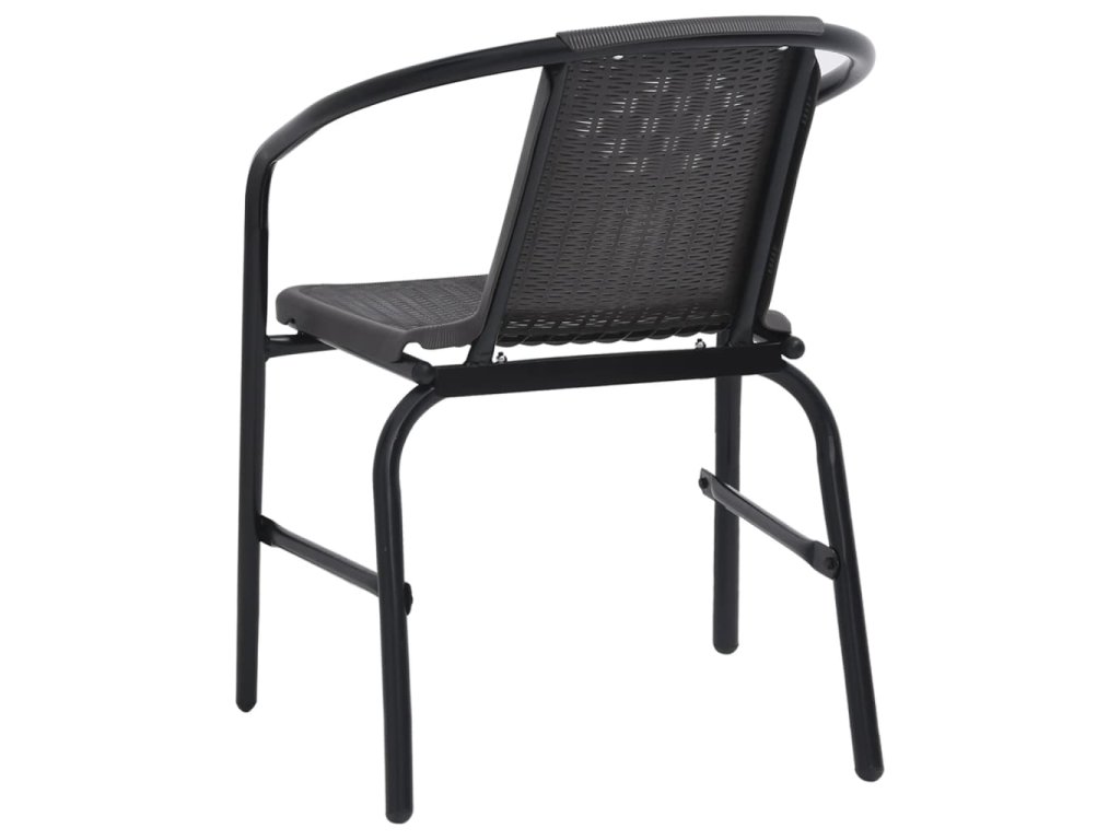 Táto sada záhradných stoličiek s ratanovým vzhľadom je vhodná na stolovanie alebo na odpočinok vo vonkajších priestoroch.