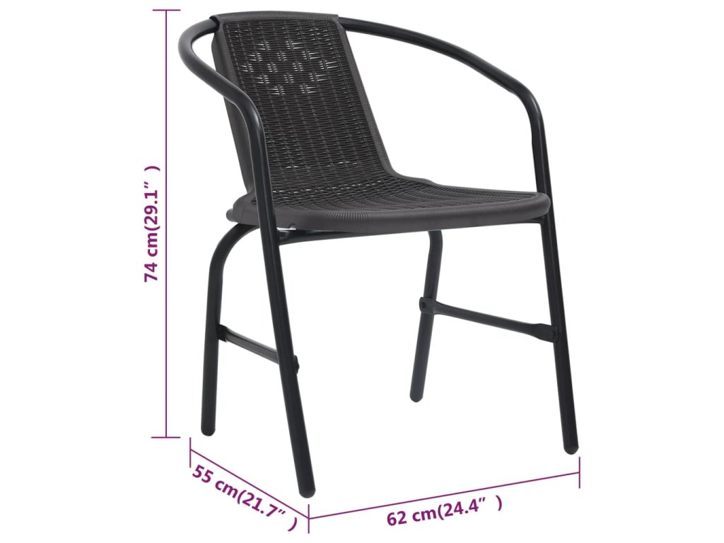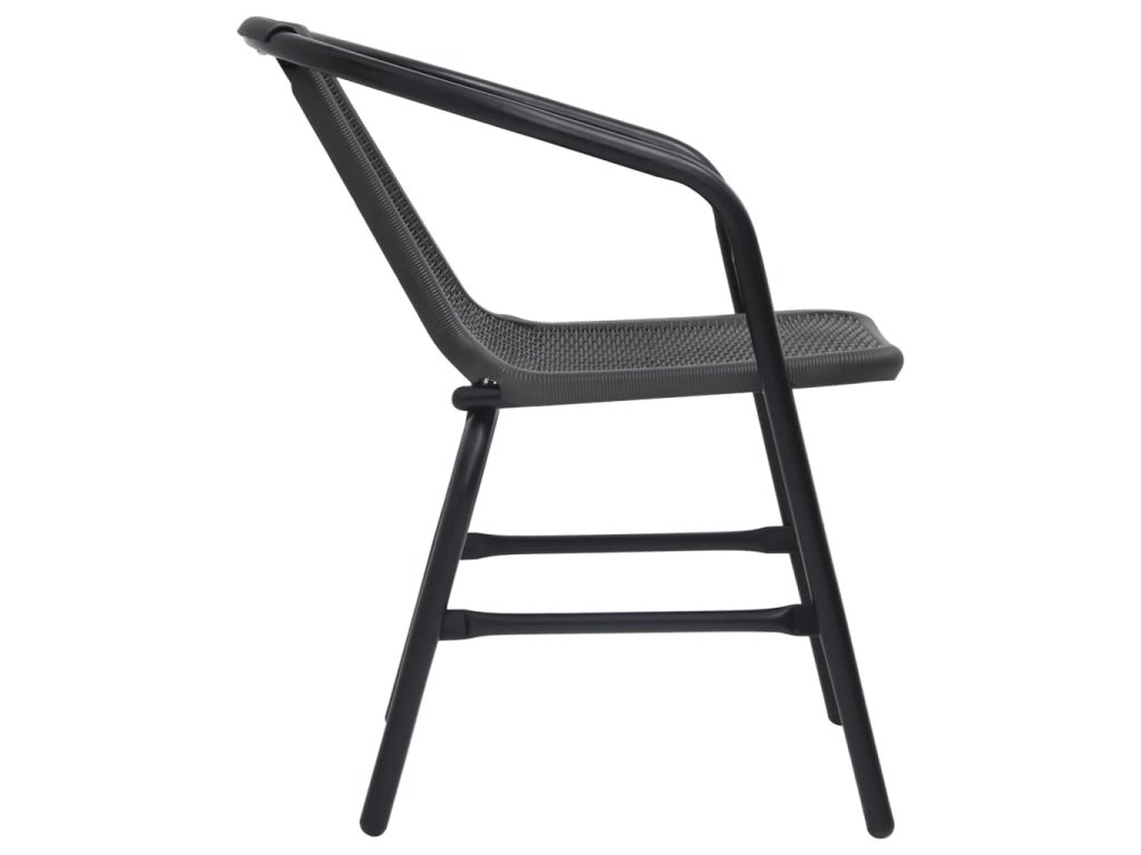 Táto sada záhradných stoličiek s ratanovým vzhľadom je vhodná na stolovanie alebo na odpočinok vo vonkajších priestoroch.