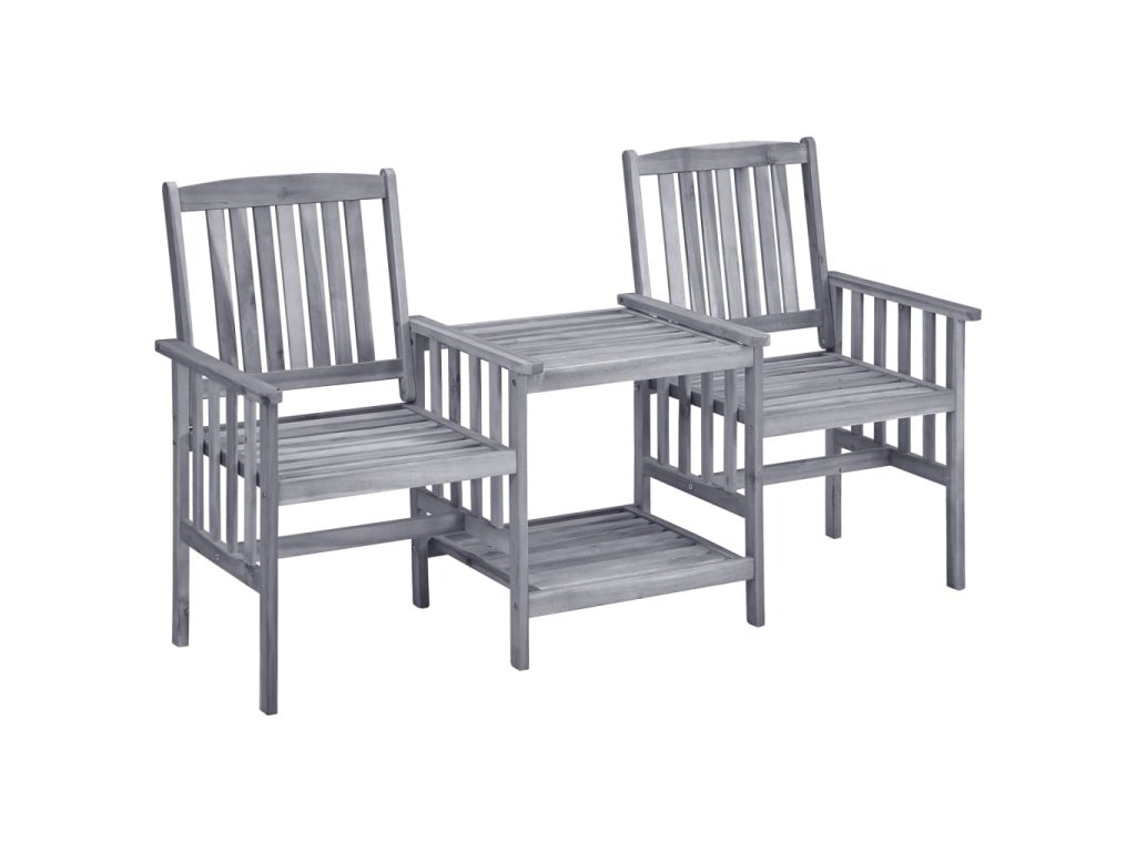 Rustikálne drevené záhradné stoličky s čajovým stolíkom budú praktickým a pútavým doplnkom vašej záhrady a terasy.