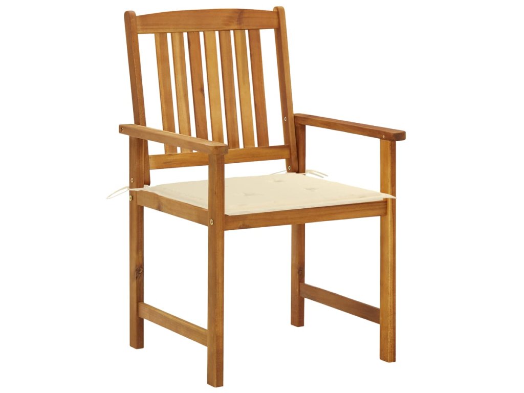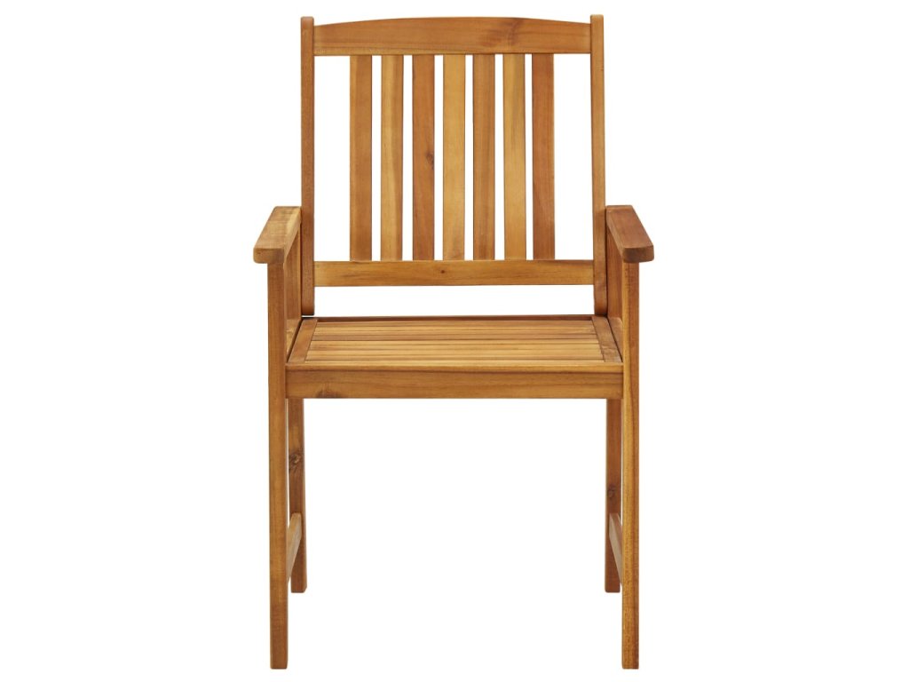 Tieto záhradné stoličky sú vyrobené z akáciového masívu, vďaka čomu sú pevné a stabilné. Podložky poskytujú potrebné pohodlie pri sedení. Na každej podložke sa nachádzajú dva páry šnúrok, pomocou ktorých ju upevníte k vonkajšej stoličke.
