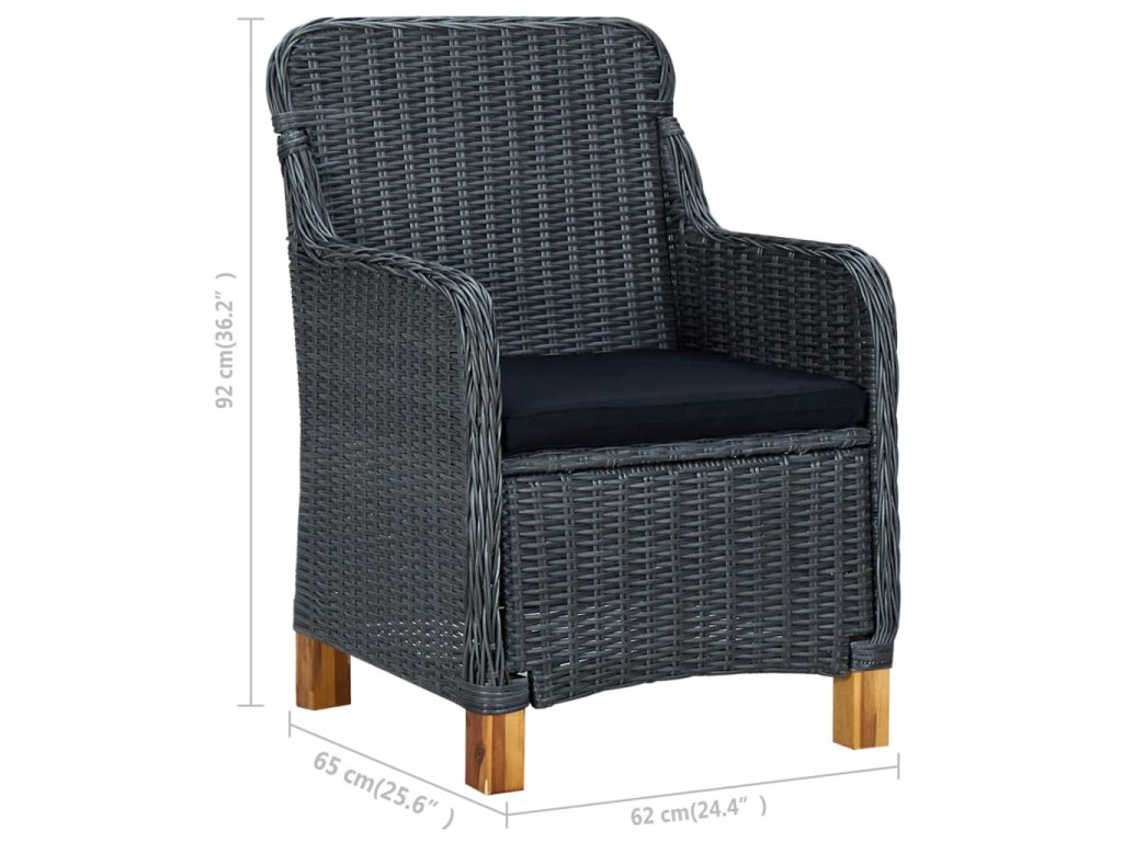 Vonkajšia stolička s oceľovým rámom s práškovou povrchovou úpravou, ktorý je pokrytý okrúhlym PE ratanom, je pevná a dá sa ľahko očistiť. Podložky na sedadlo s hustou výplňou vám poskytnú dokonalý komfort pri oddychovaní. Poťah podložky na zips sa dá zvliecť a oprať. Nohy z akáciového masívu prinášajú potrebnú pevnosť a stabilitu. Záhradné stoličky majú ľahkú konštrukciu, takže sa dajú jednoducho premiestniť.