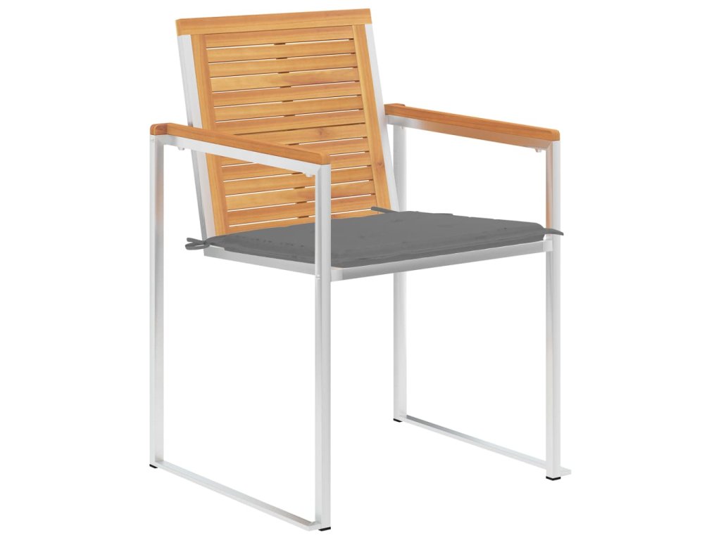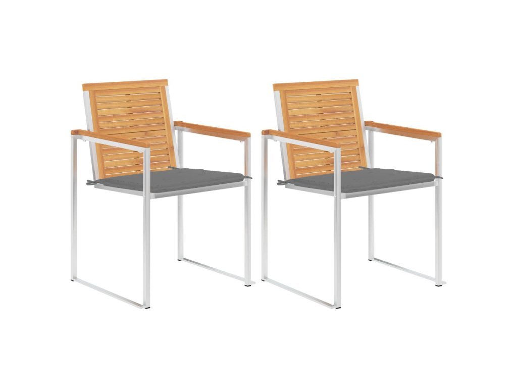 Táto sada tíkového nábytku je vyhotovená z mimoriadne trvácneho tvrdého tíkového dreva, ktoré bolo umelo vysušené v sušiarni a jeho povrch bol následne jemne obrúsený, aby získal hladký vzhľad. Tíkové drevo sa vyznačuje výnimočnou pevnosťou a odolnosťou voči poveternostným vplyvom, a tak predstavuje jeden z najvhodnejších materiálov na výrobu záhradného nábytku spomedzi všetkých ostatných druhov dreva. Ak si chcete zaobstarať záhradný nábytok, ktorý vám bude slúžiť dlhé roky, tíkové drevo je pre vás ako stvorené. Stoličky sú tiež vyrobené z prvotriednej nehrdzavejúcej ocele 304, vďaka čomu sú odolné voči hrdzi a ľahko sa čistia. Vankúš navyše zvyšuje pohodlie pri leňošení. Každý vankúš má dve sady šnúrok, ktorými sa pevne pripevní o stoličku.