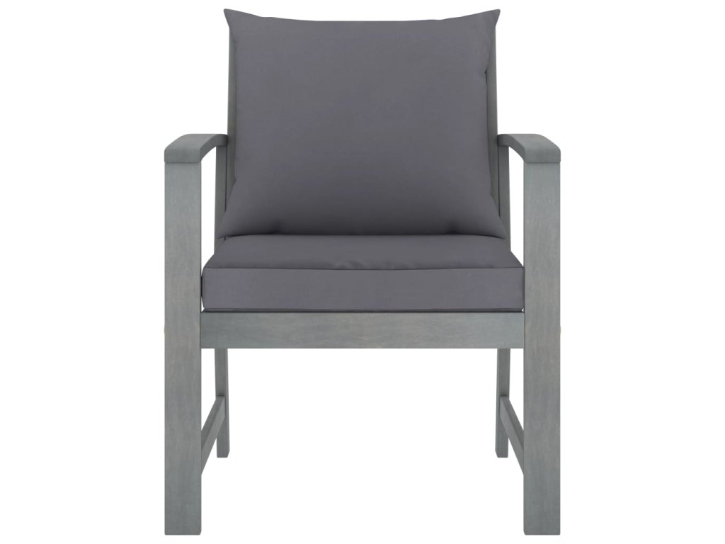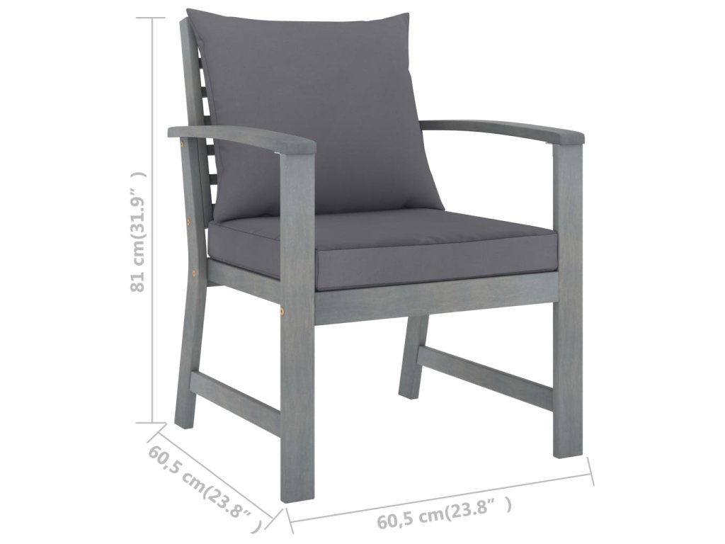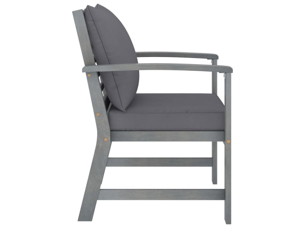 - Materiál: Masívne akáciové drevo so sivou povrchovou úpravou, látka (100% polyester)