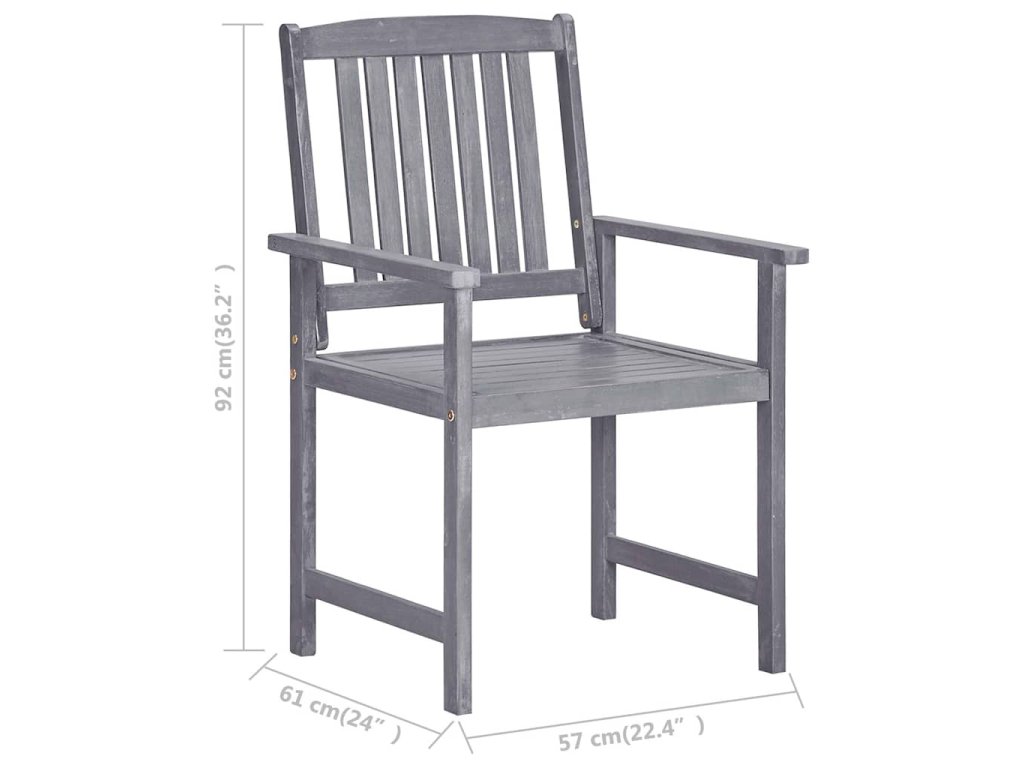 Tieto záhradné stoličky sú vyrobené z masívneho akáciového dreva, vďaka čomu sú pevné a stabilné. Vankúše zvyšujú pohodlie. Každý vankúš je vybavený dvoma sadami šnúrok, ktoré ho pevne pripevnia na vonkajšiu stoličku.