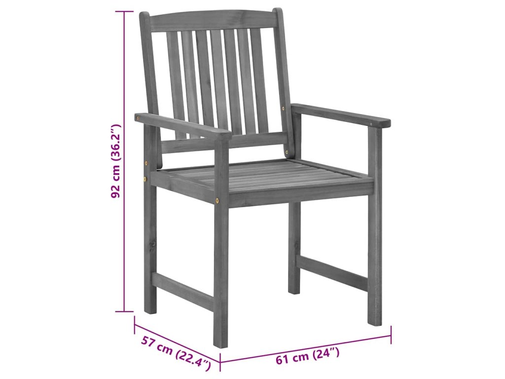 Tieto záhradné stoličky sú vyrobené z masívneho akáciového dreva, vďaka čomu sú pevné a stabilné. Vankúše zvyšujú pohodlie. Každý vankúš je vybavený dvoma sadami šnúrok, ktoré ho pevne pripevnia na vonkajšiu stoličku.