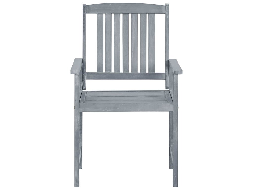 Táto sada vonkajších stoličiek je vyrobená z masívneho akáciového dreva so sivou povrchovou úpravou, čo je tvrdé drevo s bohatou textúrou. Masívne akáciové drevo tiež znesie vyššiu záťaž a odoláva opotrebovaniu časom. Táto sada drevených stoličiek je stabilná, trvácna a odolná voči poveternostným vplyvom. Povrch stoličky sa navyše ľahko čistí vlhkou handričkou. Dodané podušky poskytujú extra pohodlie.
