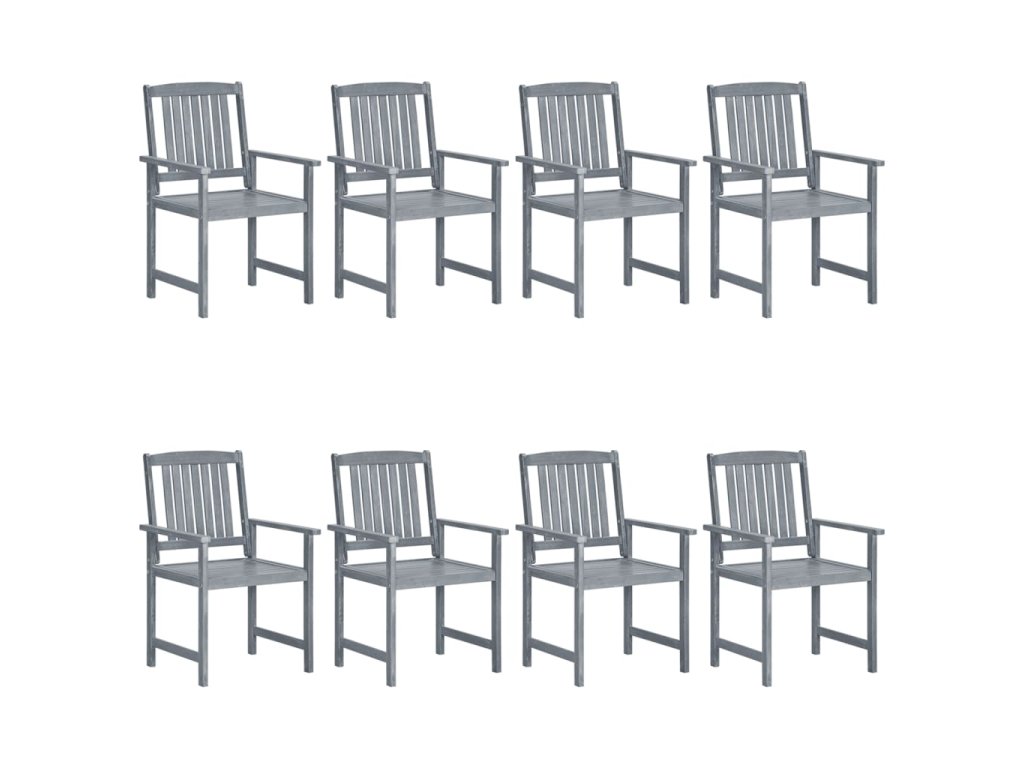 Táto sada vonkajších stoličiek je vyrobená z masívneho akáciového dreva so sivou povrchovou úpravou, čo je tvrdé drevo s bohatou textúrou. Masívne akáciové drevo tiež znesie vyššiu záťaž a odoláva opotrebovaniu časom. Táto sada drevených stoličiek je stabilná, trvácna a odolná voči poveternostným vplyvom. Povrch stoličky sa navyše ľahko čistí vlhkou handričkou. Dodané podušky poskytujú extra pohodlie.