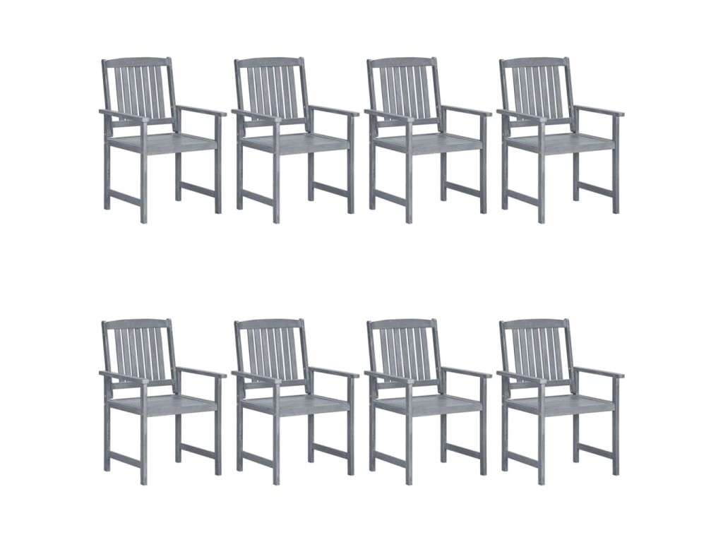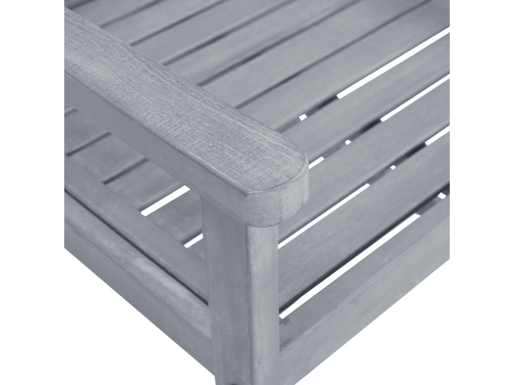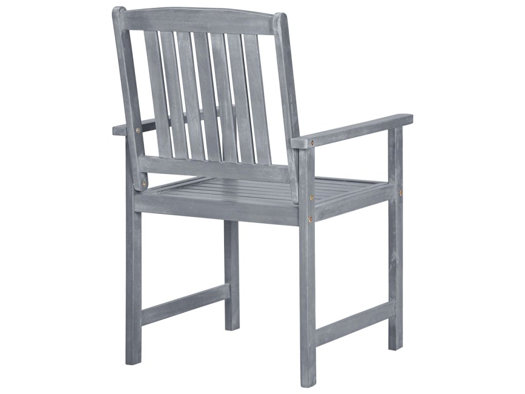 Táto sada vonkajších stoličiek je vyrobená z masívneho akáciového dreva so sivou povrchovou úpravou, čo je tvrdé drevo s bohatou textúrou. Masívne akáciové drevo tiež znesie vyššiu záťaž a odoláva opotrebovaniu časom. Táto sada drevených stoličiek je stabilná, trvácna a odolná voči poveternostným vplyvom. Povrch stoličky sa navyše ľahko čistí vlhkou handričkou.