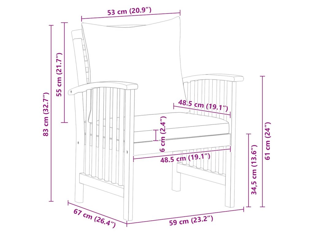 Záhradná stolička je vyrobená z masívneho akáciového dreva s olejovou povrchovou úpravou, vďaka čomu je stabilná a odolná. Vďaka remeselnému spracovaniu a krásnej drevenej štruktúre je každý kus nábytku jedinečný a mierne sa líši od iných kusov. Vankúš na sedadle a operadle dodá extra pohodlie počas sedenia.