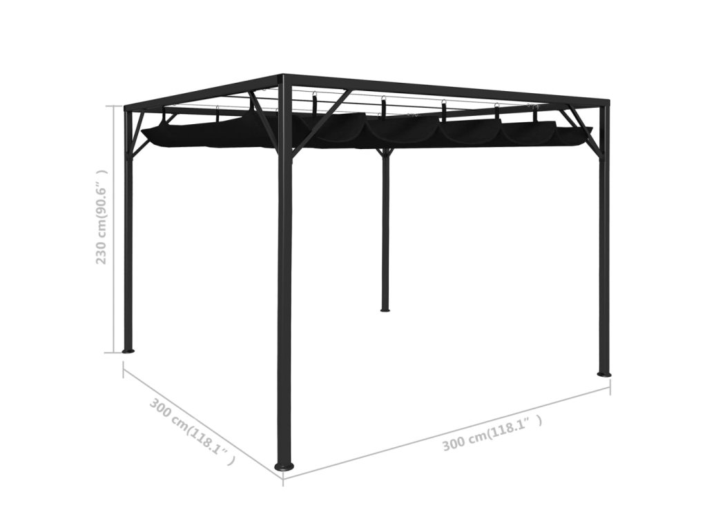 Tento altánok vám a vašej rodine umožní vychutnať si príjemné posedenia s priateľmi a poskytne vám ochranu pred vrtochmi počasia. Altánok je vhodný do takmer každého počasia; zaťahovacia strecha vás ochráni pred škodlivým UV žiarením aj pred dažďom. Tento altánok pozostáva z kovového rámu s práškovou povrchovou úpravou a vodovzdornej strechy zo 100% polyesteru.