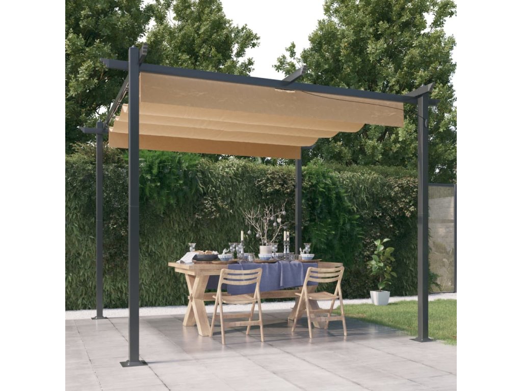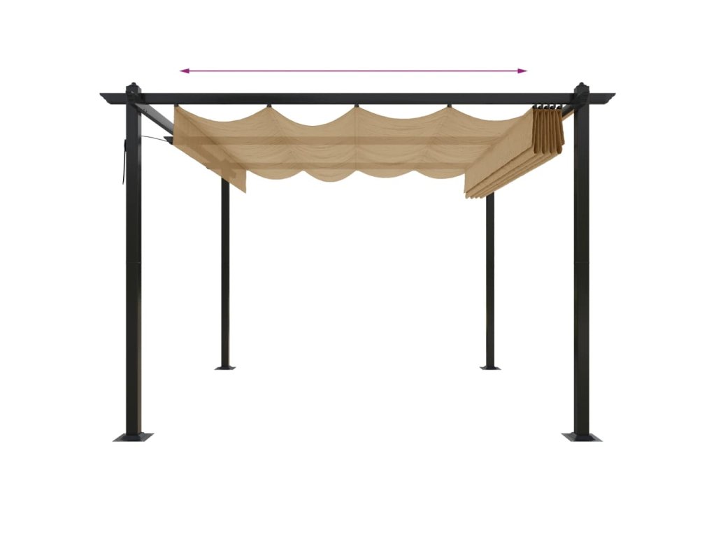 Tento vonkajší altánok má oceľový rám s práškovým nástrekom, vďaka čomu je pevný a stabilný. Tento altánok je vybavený sťahovacou strechou potiahnutou PA, ktorá je odolná voči UV žiareniu a vode. Striešku jednoducho otočíte a nastavíte do ideálnej polohy jednoduchým zatrasením tyčou. Otvorte ho, keď si chcete užiť slnko a zatvorte ho, aby ste vytvorili tieň. Altánok je ako stvorený na vonkajšie aktivity.
