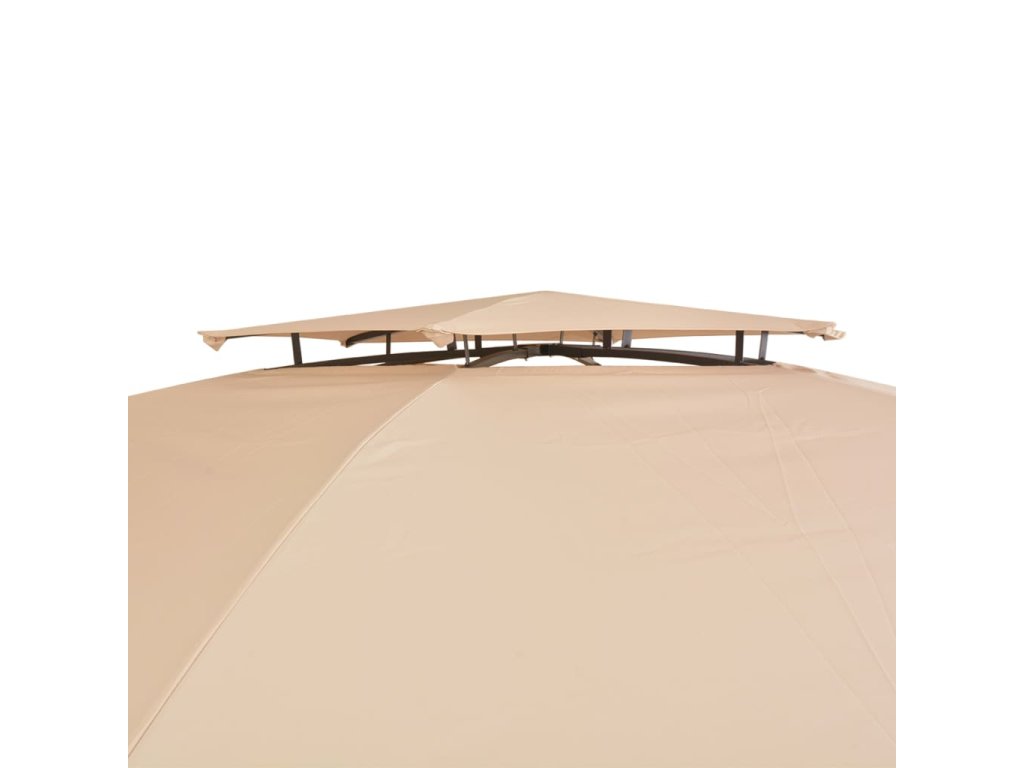 Vodovzdorná strecha a závesy sú vyrobené z polyesterovej látky s vrstvou polyamidu (PA). Rám je spoľahlivo vyhotovený z pevnej ocele s práškovou povrchovou úpravou, vďaka čomu je veľmi stabilný a odolný voči hrdzi. Prístrešok má štýlový dizajn s dvoma vetracími otvormi, ktorý zabezpečuje lepšie prúdenie vzduchu. Polyesterové závesy sa dajú jednoducho očistiť. Ak budete chcieť mať súkromie, závesy môžete zastrieť, alebo ich môžete zaviazať pomocou šnúrok, ktoré sú súčaťou balenia, aby neprekážali vo výhľade.