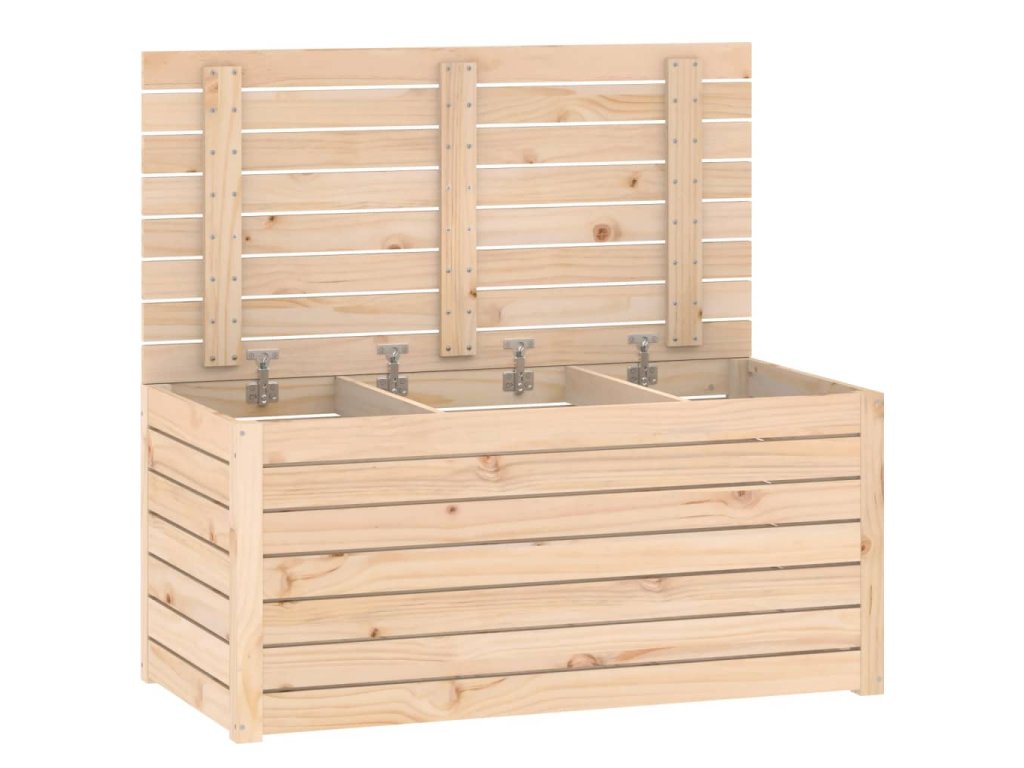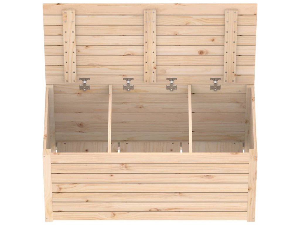 - Masívne borovicové drevo: Masívne borovicové drevo je krásny prírodný materiál. Borovicové drevo má rovnú kresbu a nachádzajú sa na ňom hrče, ktoré tomuto materiálu dodávajú charakteristický rustikálny vzhľad. Tento palubný box vyrobený z masívneho borovicového dreva je pevný a stabilný.