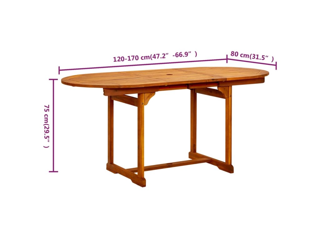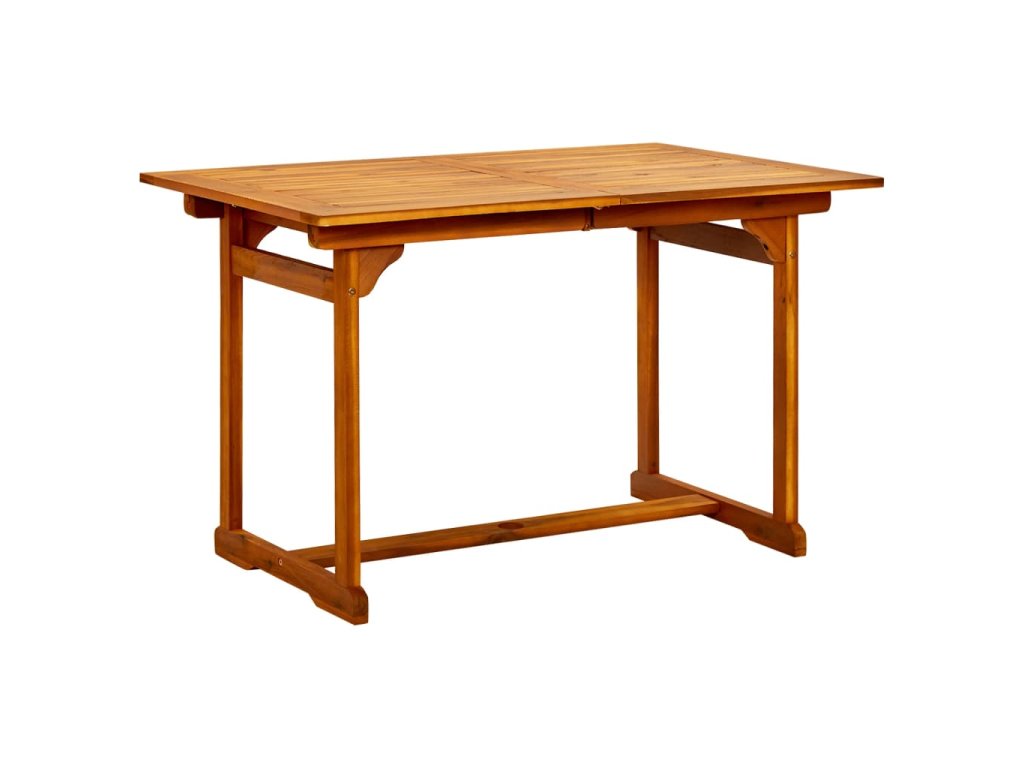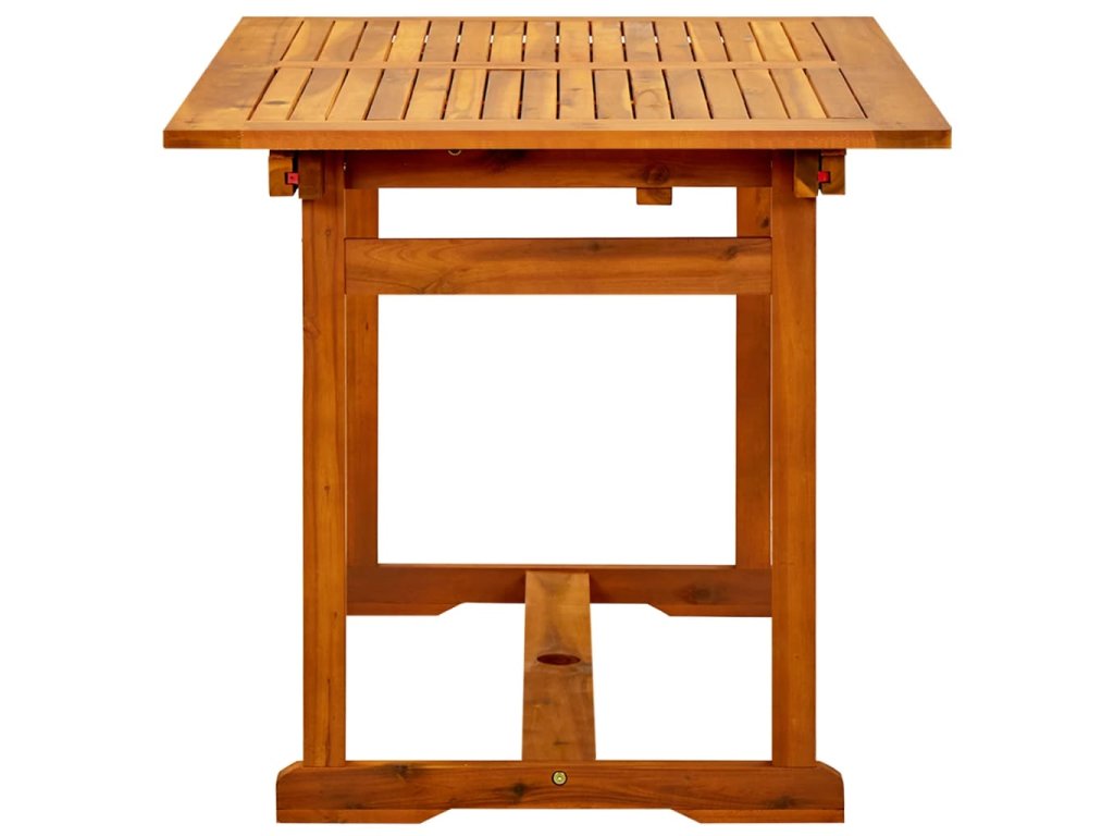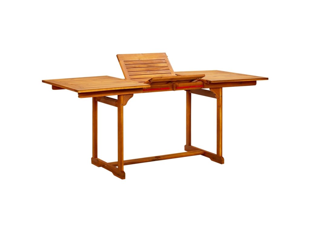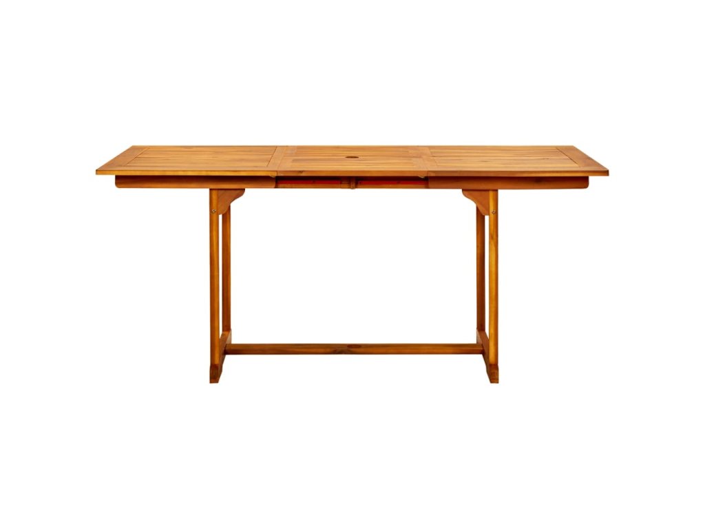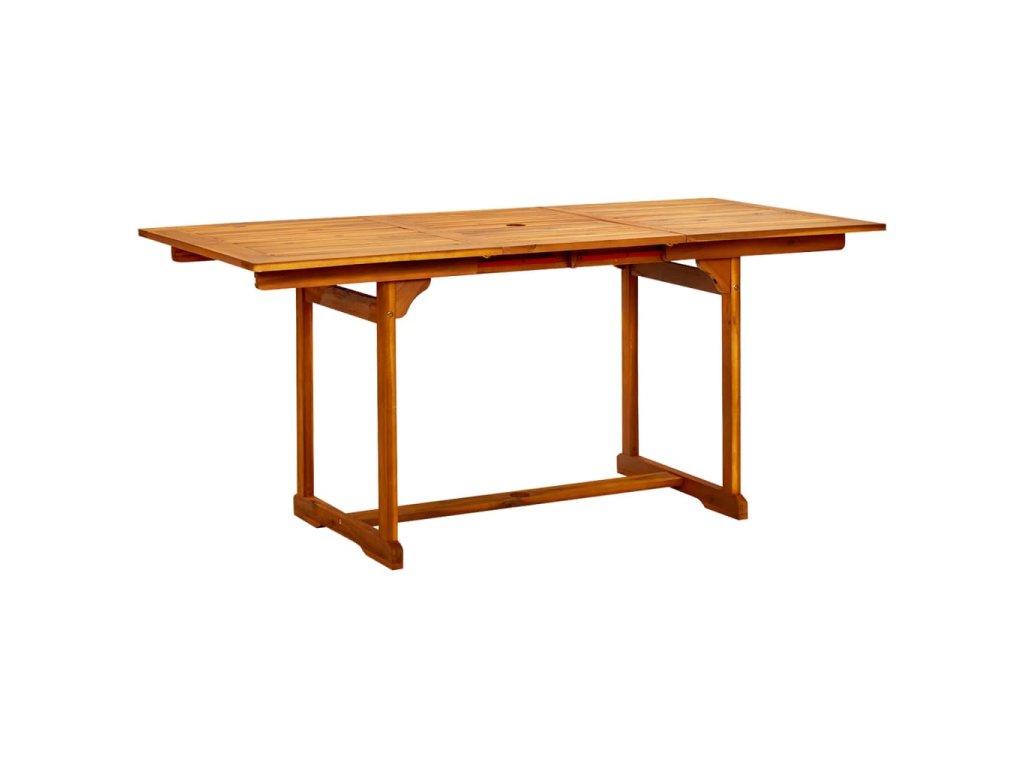 Vonkajší stôl je vyrobený z masívneho akáciového dreva, tropického tvrdého dreva, ktoré je odolné voči poveternostným vplyvom a má dlhú životnosť. Olejom upravený povrch sa ľahko čistí vlhkou handričkou. Vďaka špeciálnemu dizajnu je možné tento záhradný stôl rozložiť, keď budete potrebovať viac miesta.