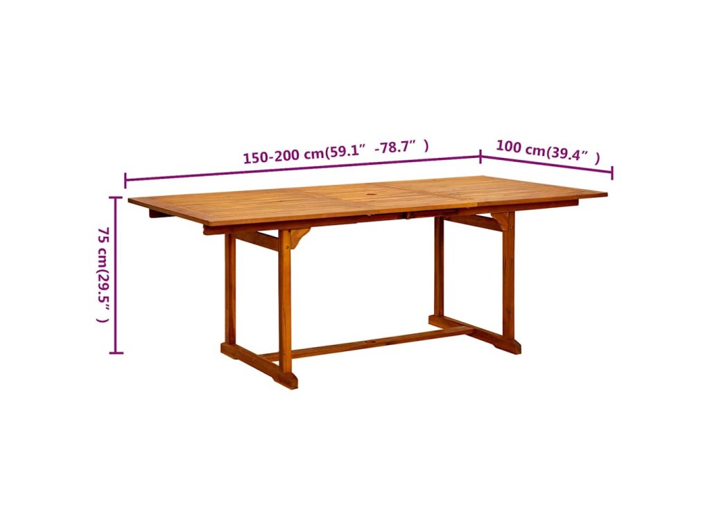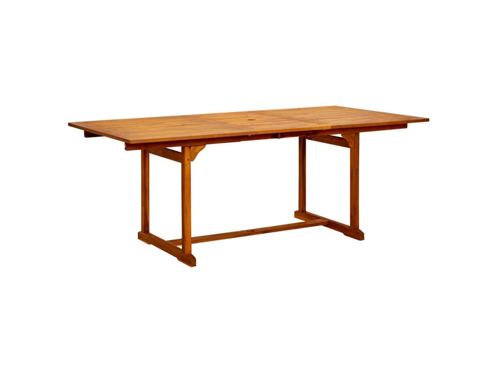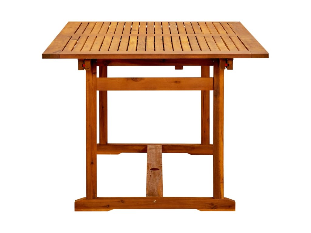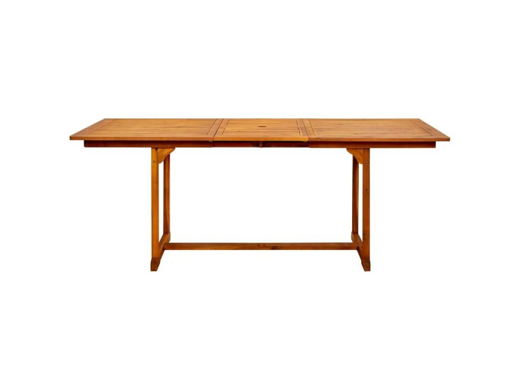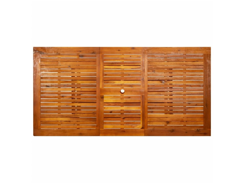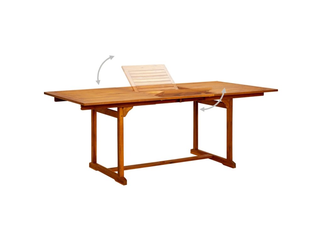 Vonkajší stôl je vyrobený z masívneho akáciového dreva, tropického tvrdého dreva, ktoré je odolné voči poveternostným vplyvom a má dlhú životnosť. Olejom upravený povrch sa ľahko čistí vlhkou handričkou. Vďaka špeciálnemu dizajnu je možné tento záhradný stôl rozložiť, keď budete potrebovať viac miesta.