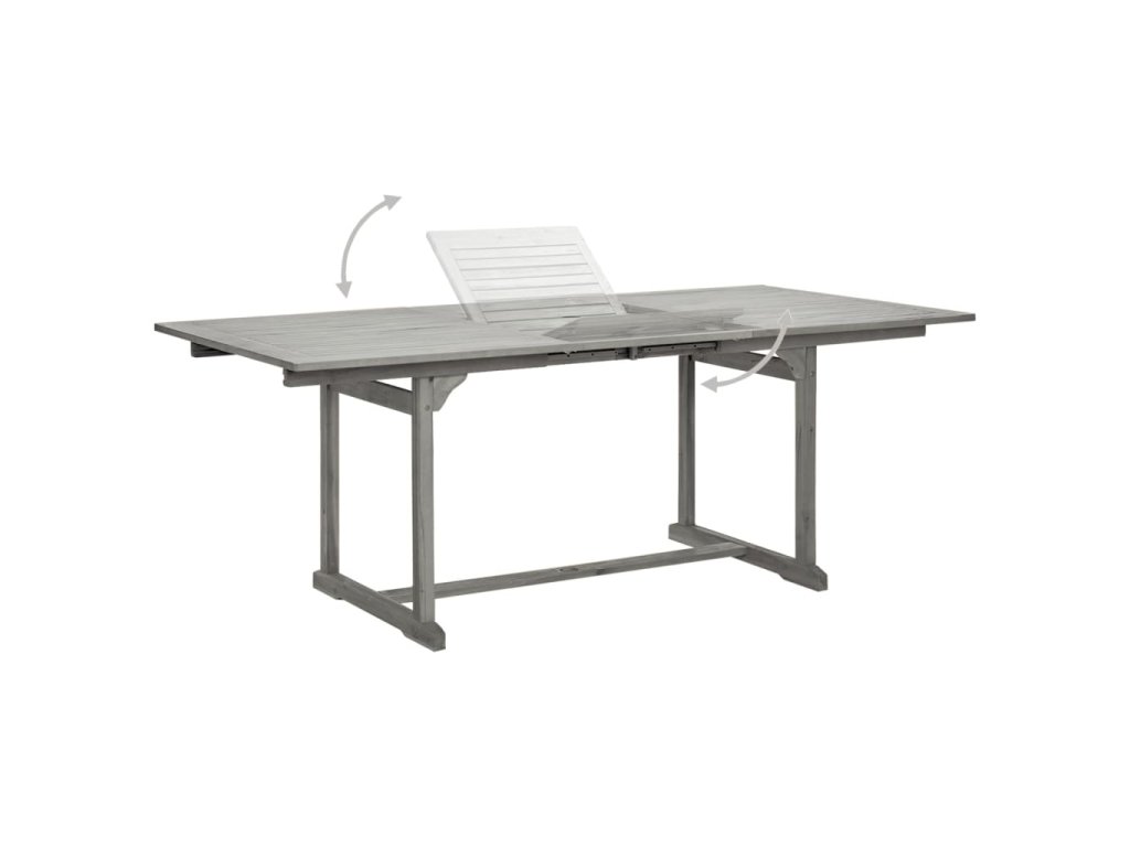 Vonkajší stôl je vyrobený z masívneho akáciového dreva, čo je tropické tvrdé drevo, ktoré je odolné voči poveternostným vplyvom a má dlhú životnosť. Vďaka špeciálnemu dizajnu je možné tento záhradný stôl rozložiť, keď budete potrebovať viac miesta.
