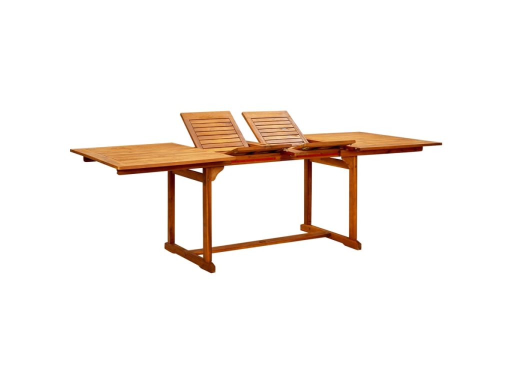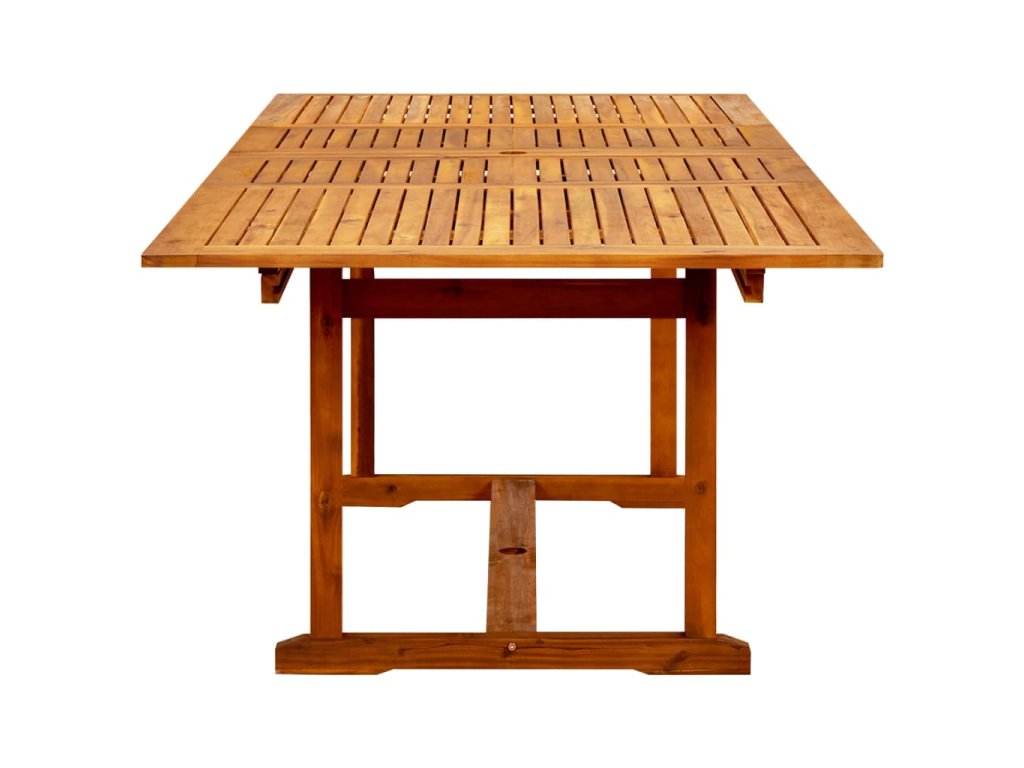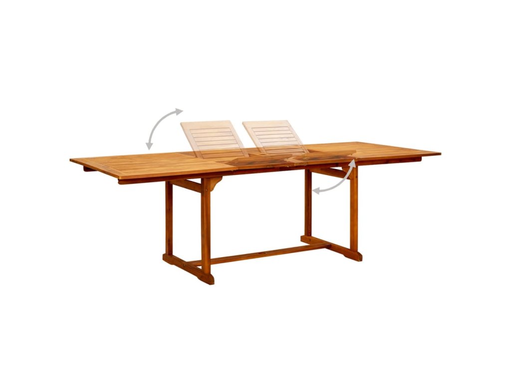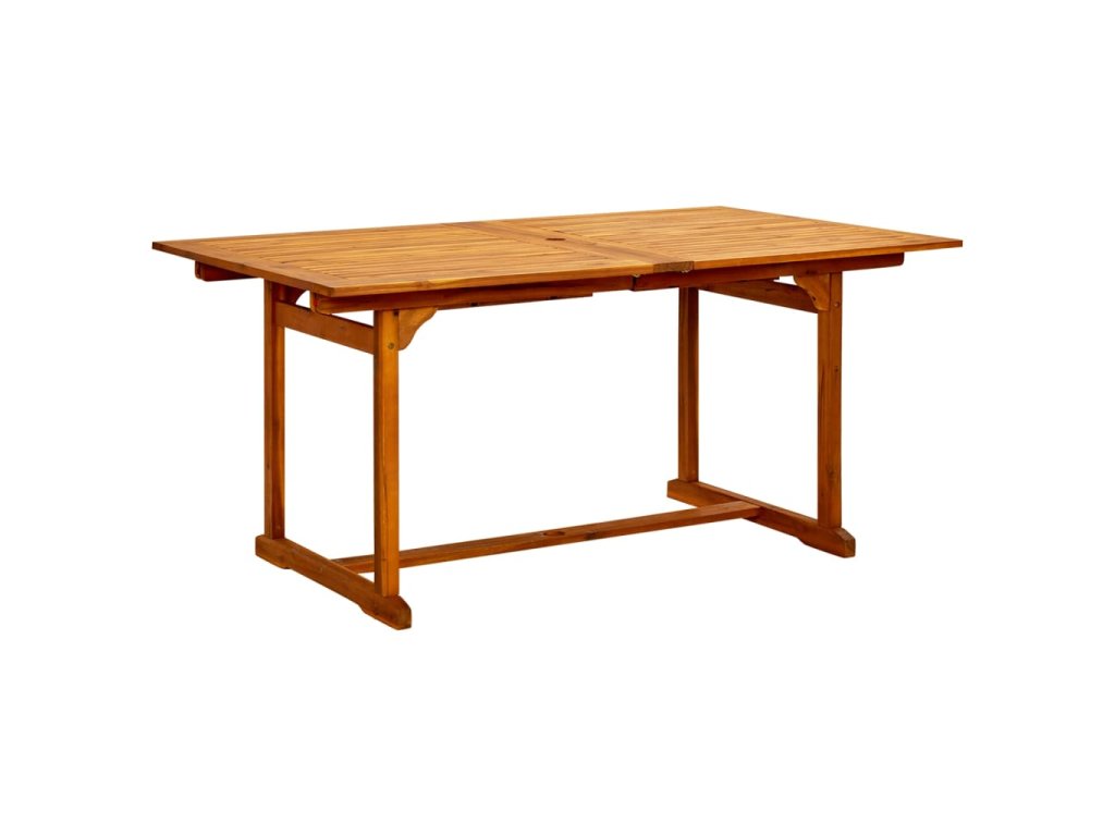 Vonkajší stôl je vyrobený z masívneho akáciového dreva, tropického tvrdého dreva, ktoré je odolné voči poveternostným vplyvom a má dlhú životnosť. Olejom upravený povrch sa ľahko čistí vlhkou handričkou. Vďaka špeciálnemu dizajnu je možné tento záhradný stôl rozložiť, keď budete potrebovať viac miesta.