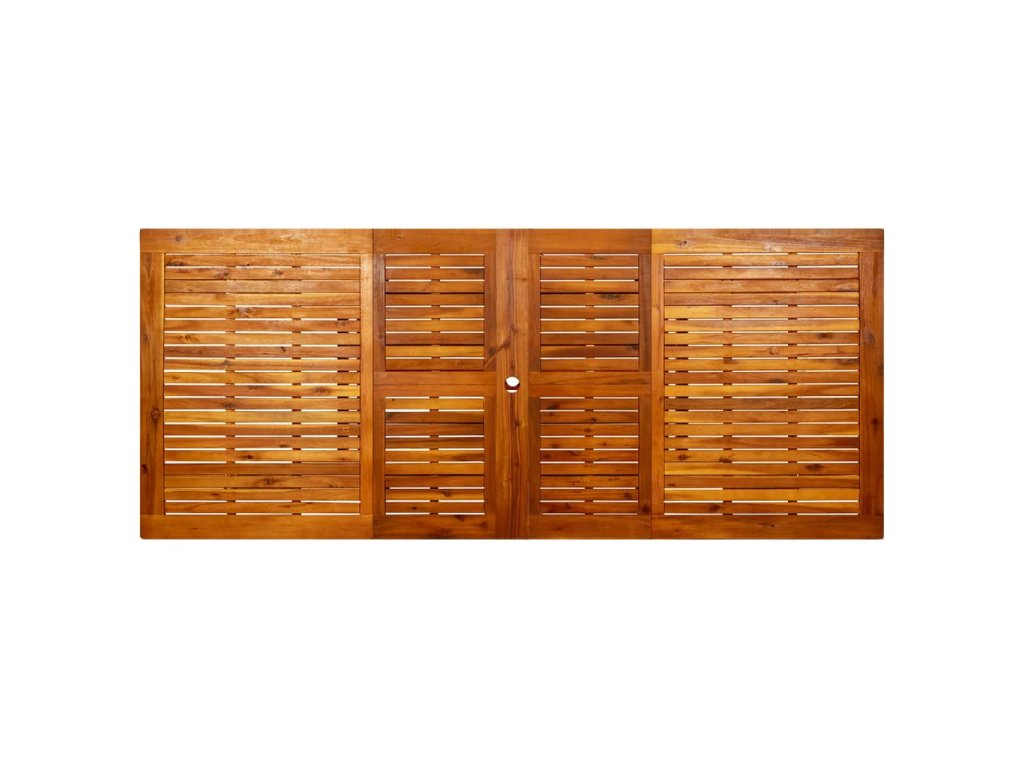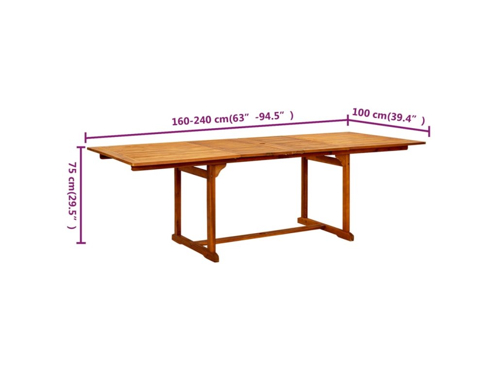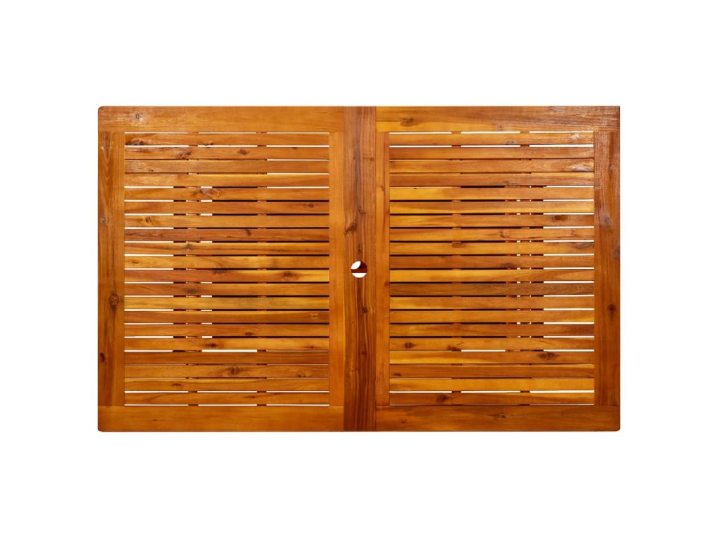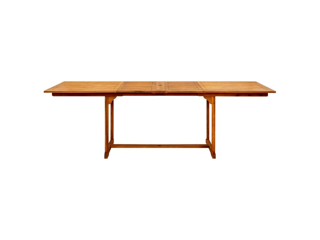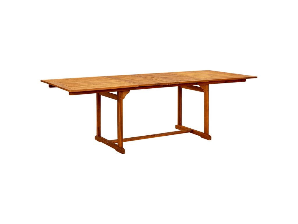 Vonkajší stôl je vyrobený z masívneho akáciového dreva, tropického tvrdého dreva, ktoré je odolné voči poveternostným vplyvom a má dlhú životnosť. Olejom upravený povrch sa ľahko čistí vlhkou handričkou. Vďaka špeciálnemu dizajnu je možné tento záhradný stôl rozložiť, keď budete potrebovať viac miesta.