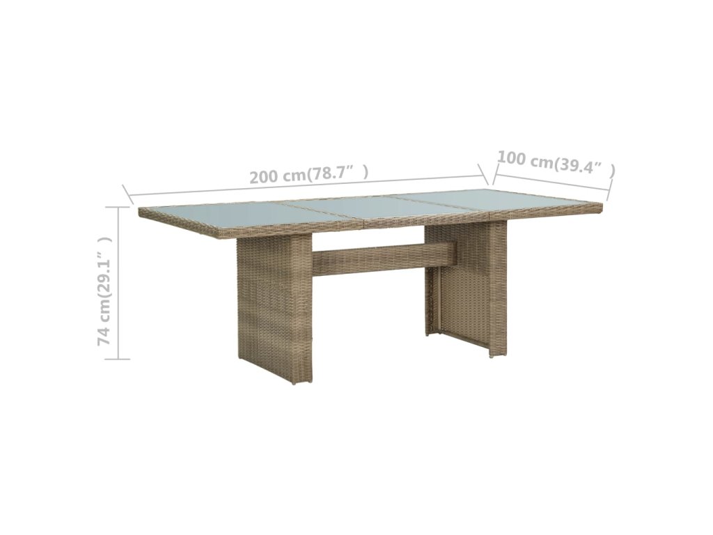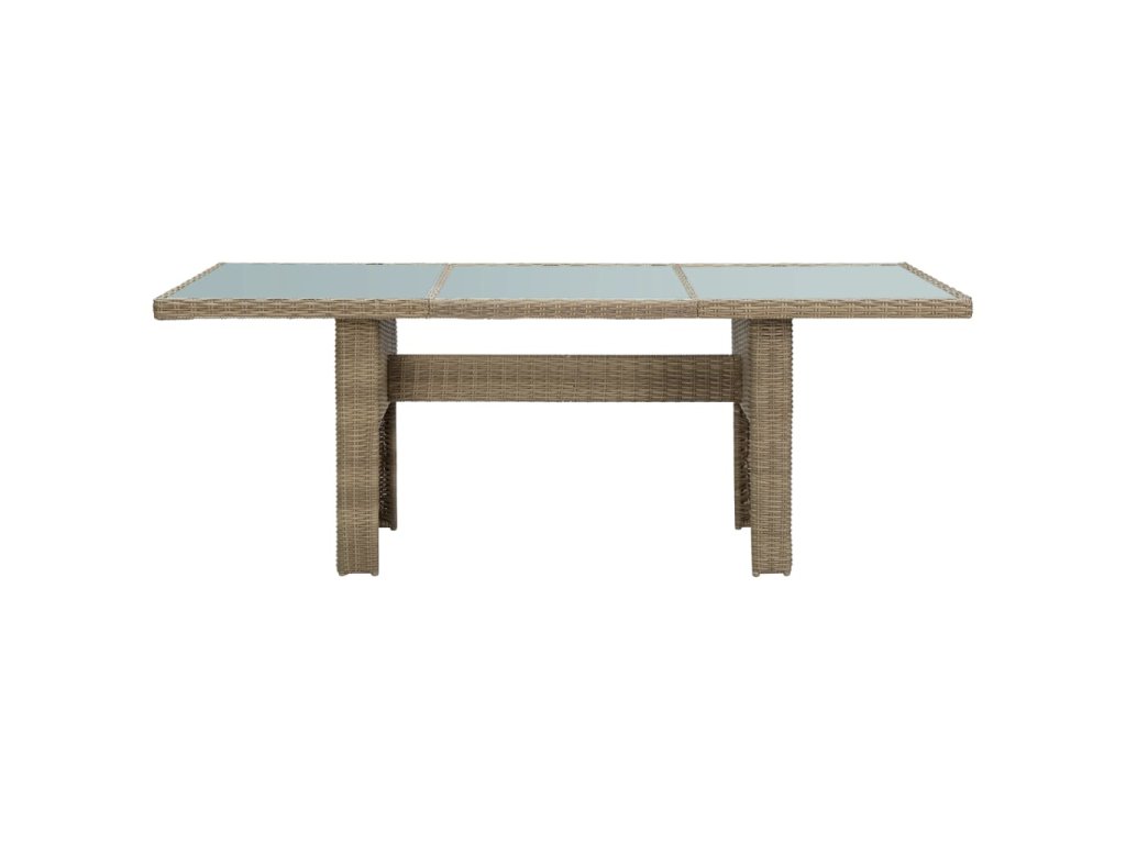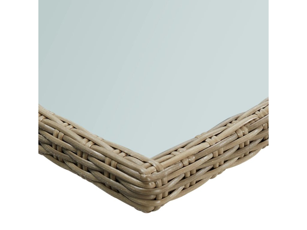 Záhradný stôl je vyrobený z PE ratanu, vďaka čomu je odolný voči poveternostným vplyvom a trvácny. Vďaka oceľovému rámu a stolovej doske zo skla je stôl stabilný a odolný. Keďže má ľahkú konštrukciu, dá sa jednoducho presúvať.